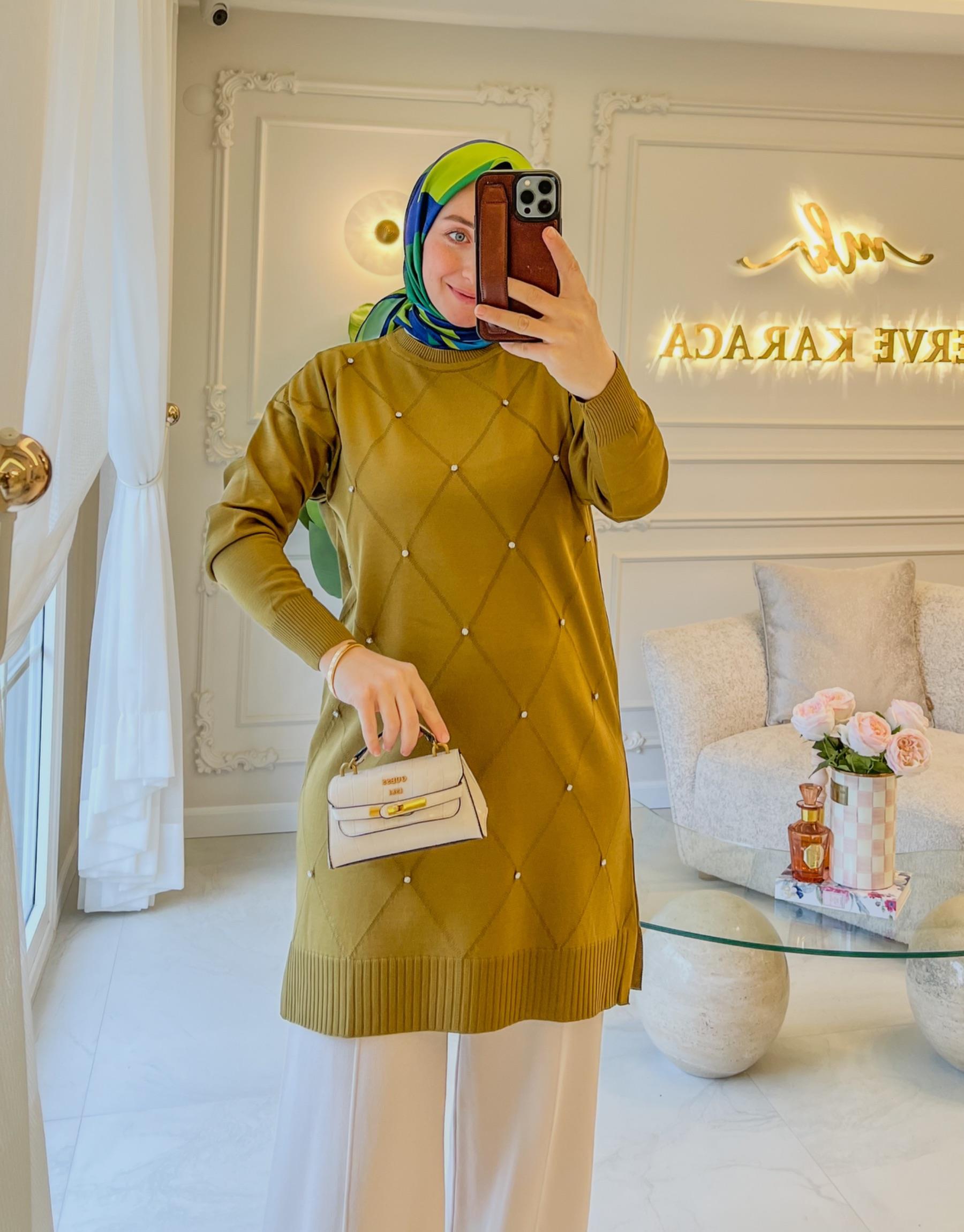 Acı Kahve 17139 Yan Yırtmaç Detaylı Triko