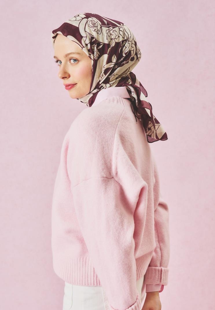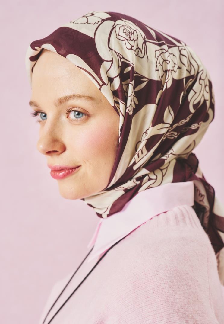 Bayan Burgundy Eternal Desen Floş Eşarp | Merve Karaca