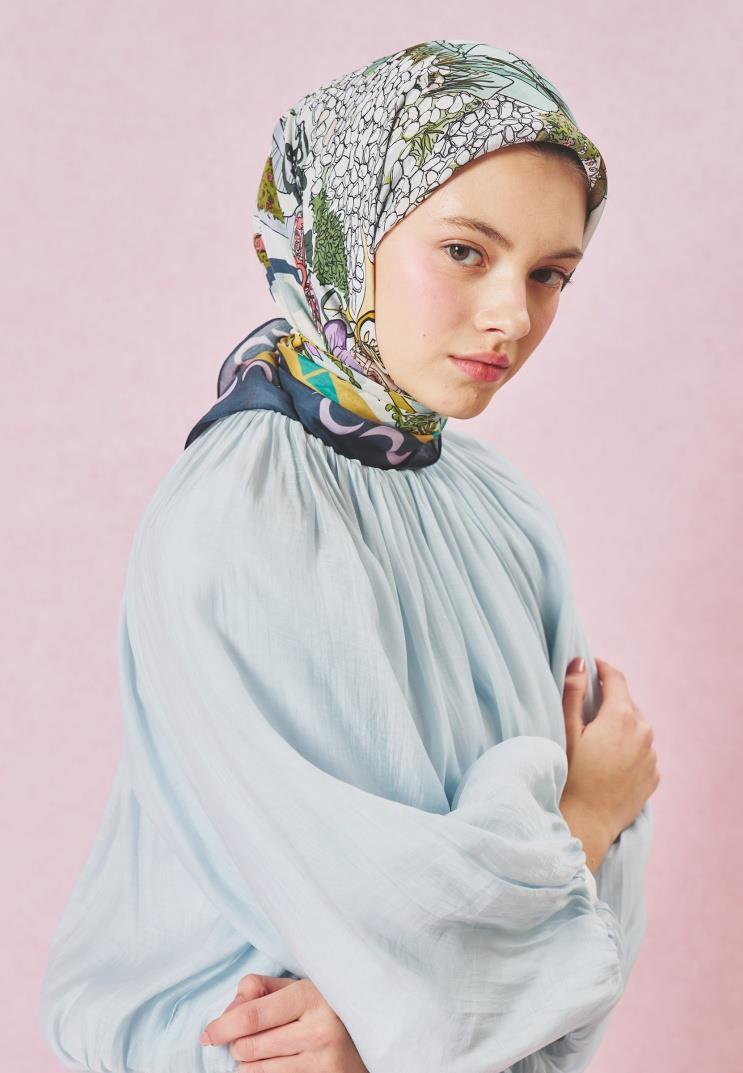 Bayan Ocean Blue Starlıght Desen Floş Eşarp | Merve Karaca
