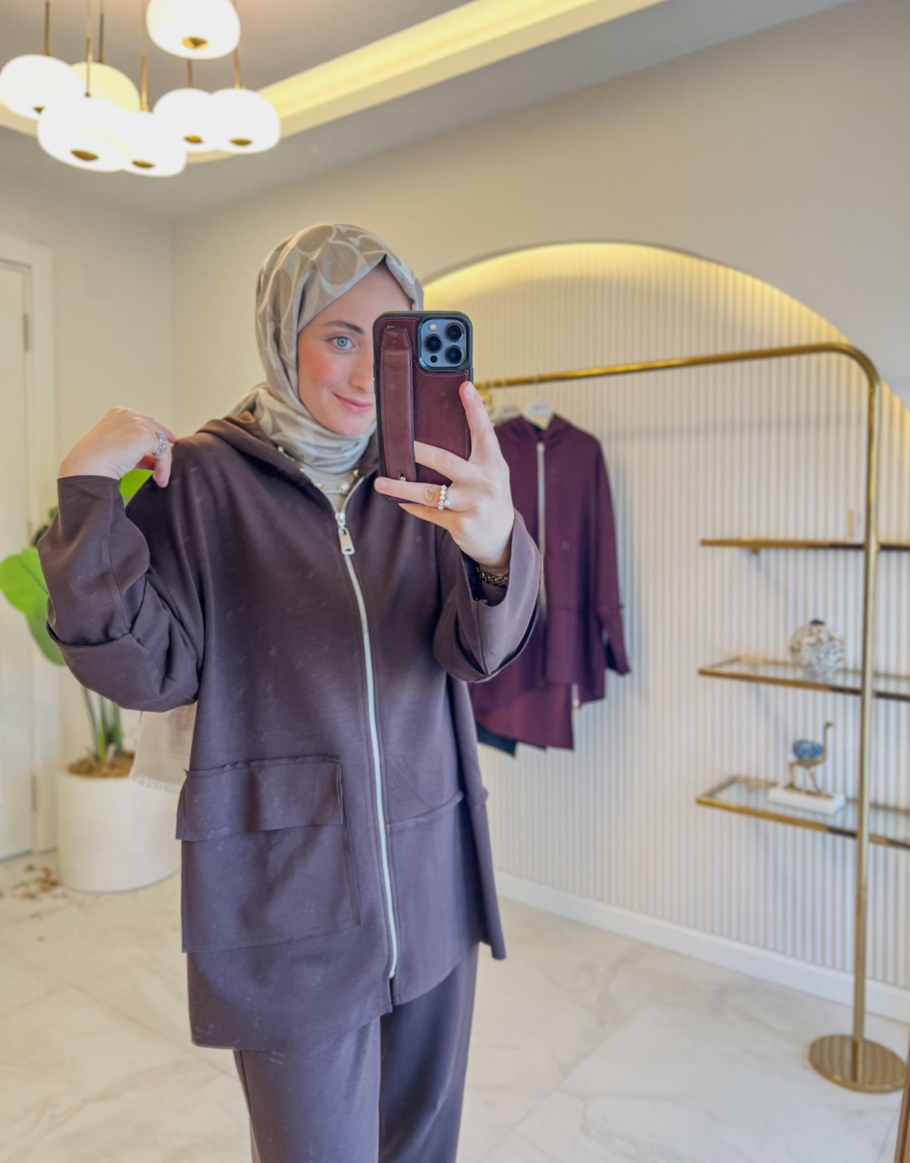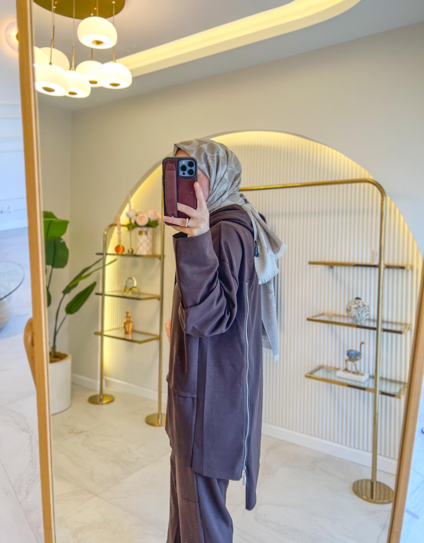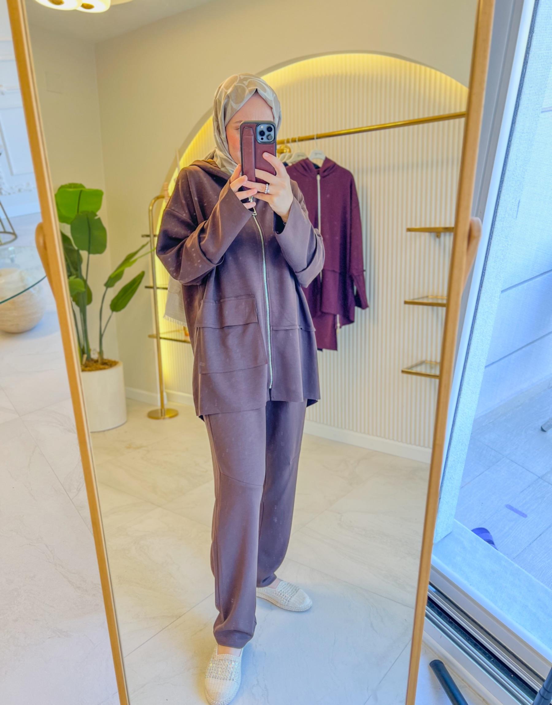 Bayan Acı Kahve 22785 Sırt Detaylı Modal Takım | Merve Karaca
