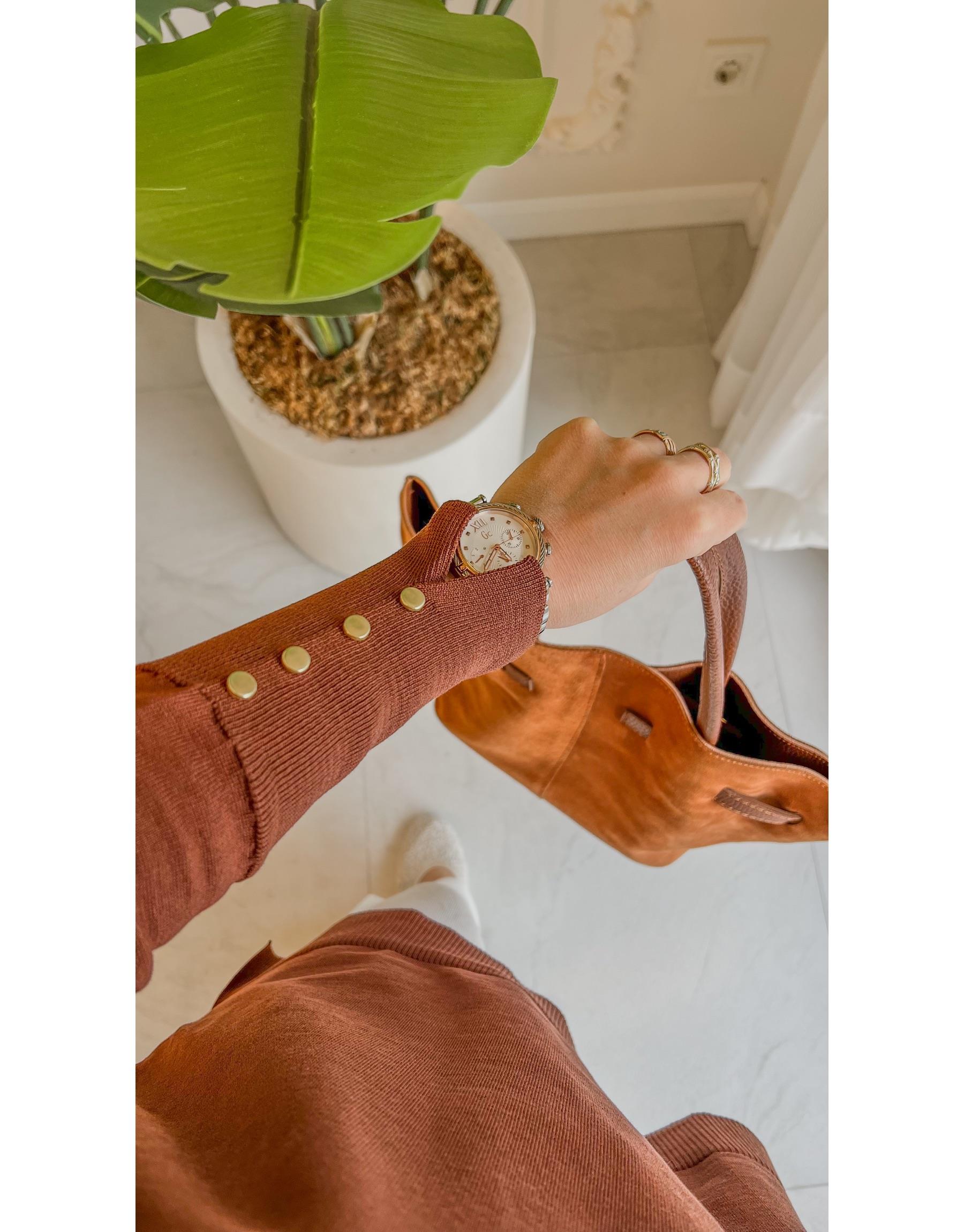Bayan Acı Kahve 4106 Kolu Düğmeli Triko Tunik | Merve Karaca