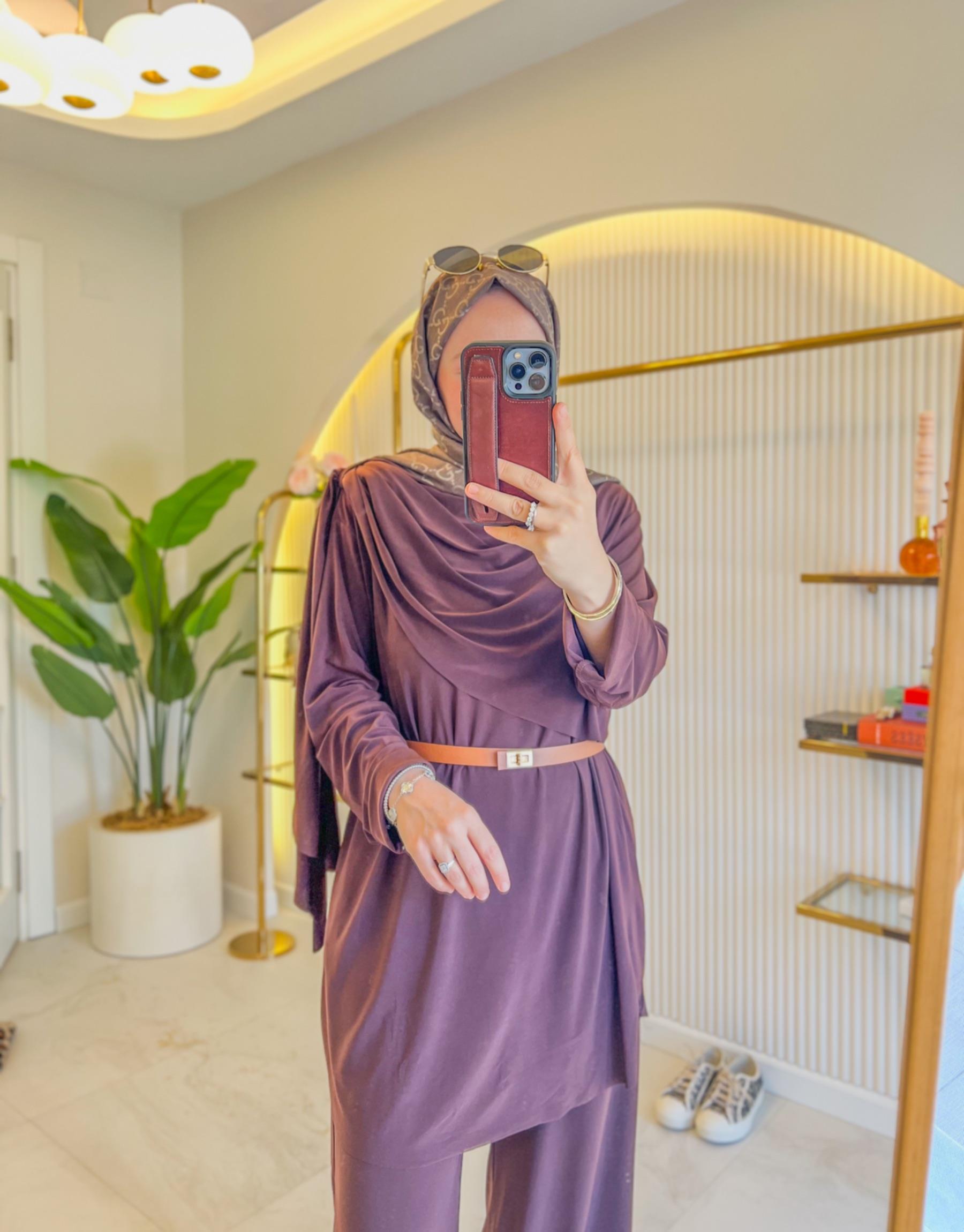 Bayan Acı Kahve Fular Detaylı Sandy Takım | Merve Karaca