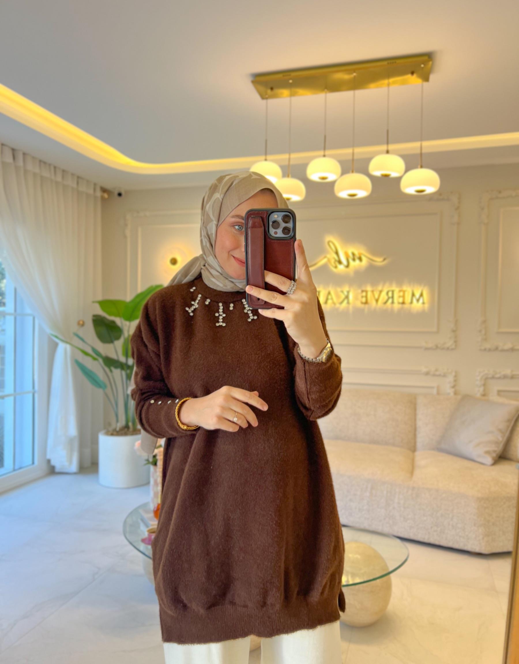 Kahve 30202 Omzu Taşlı Yumoş Bluz