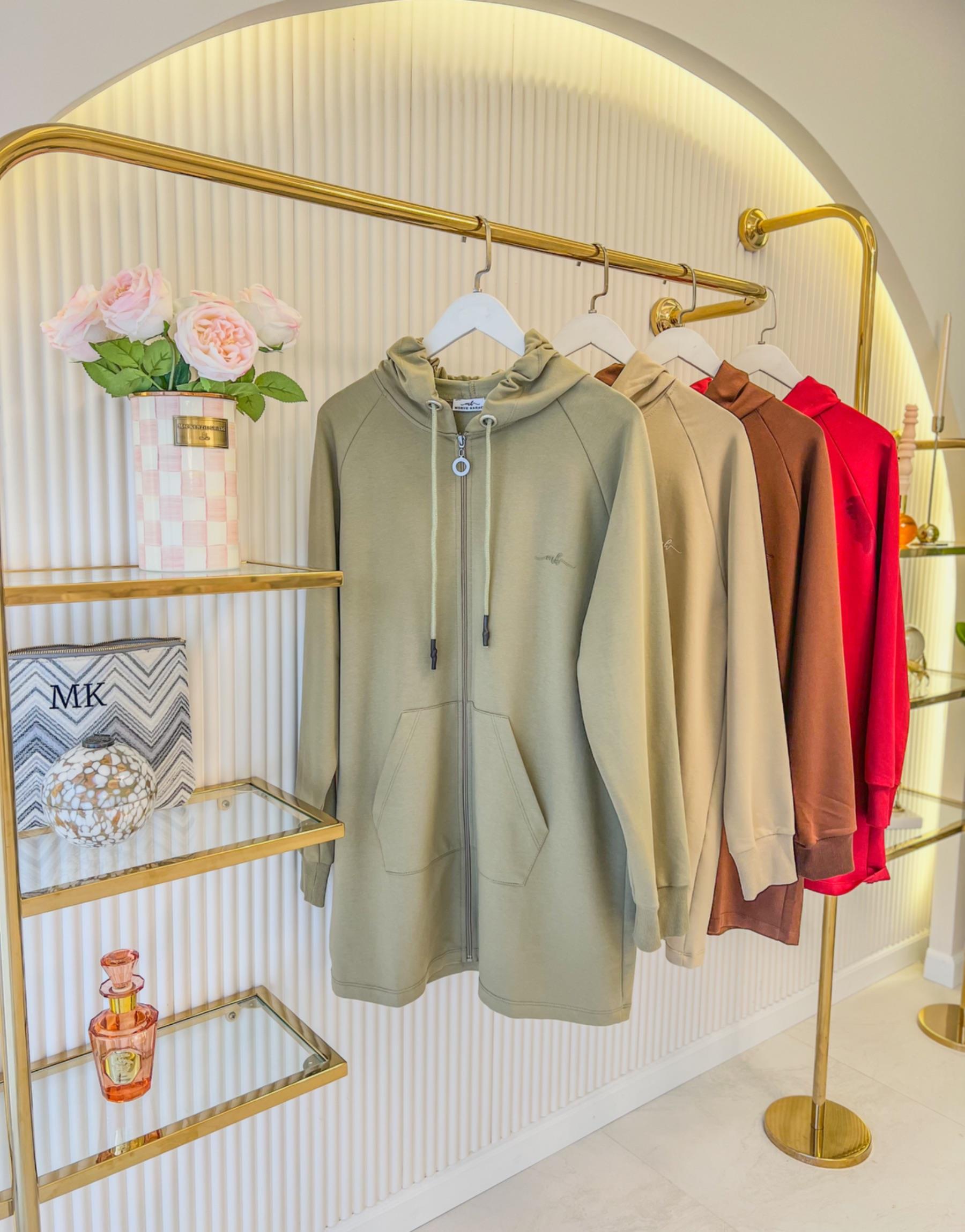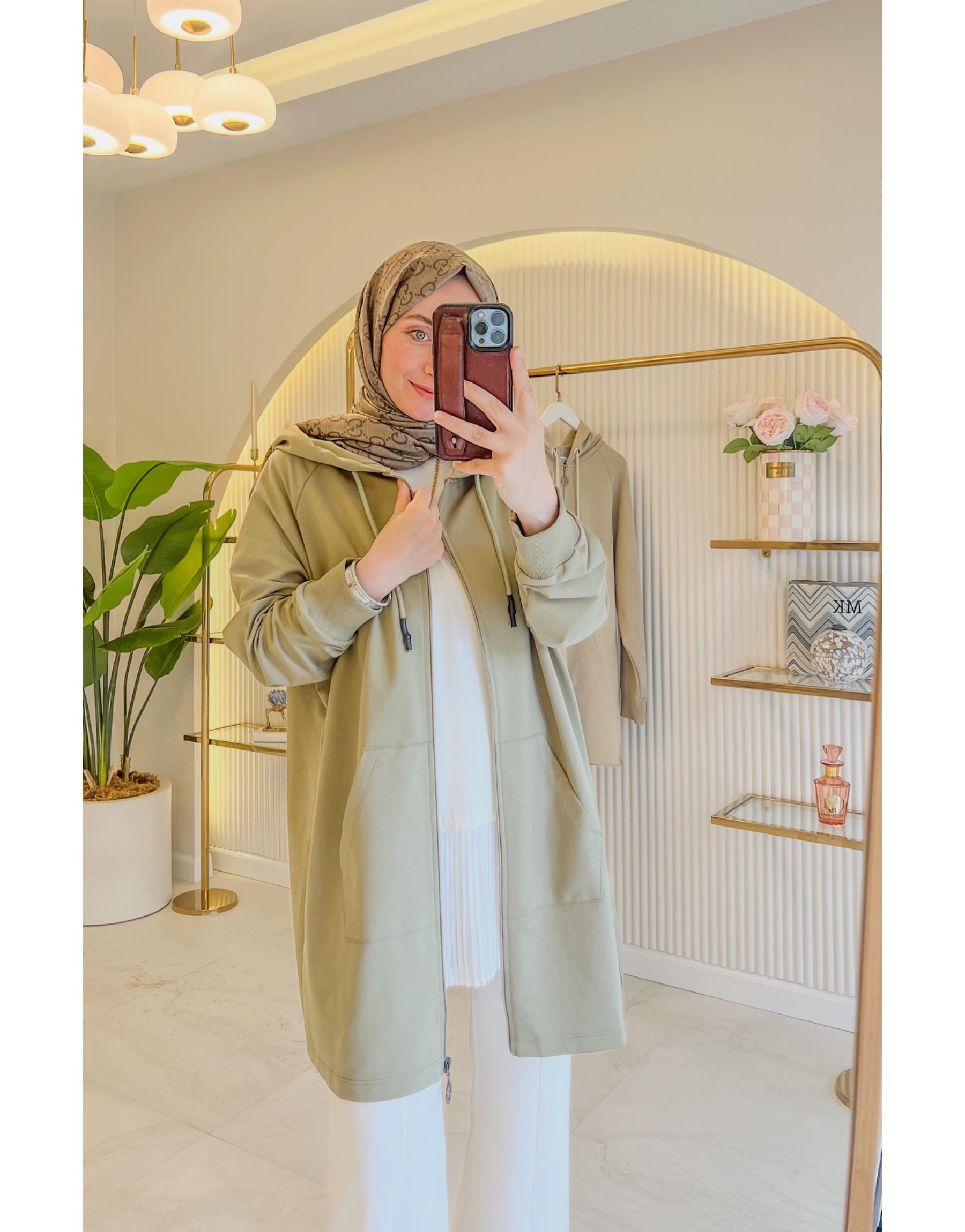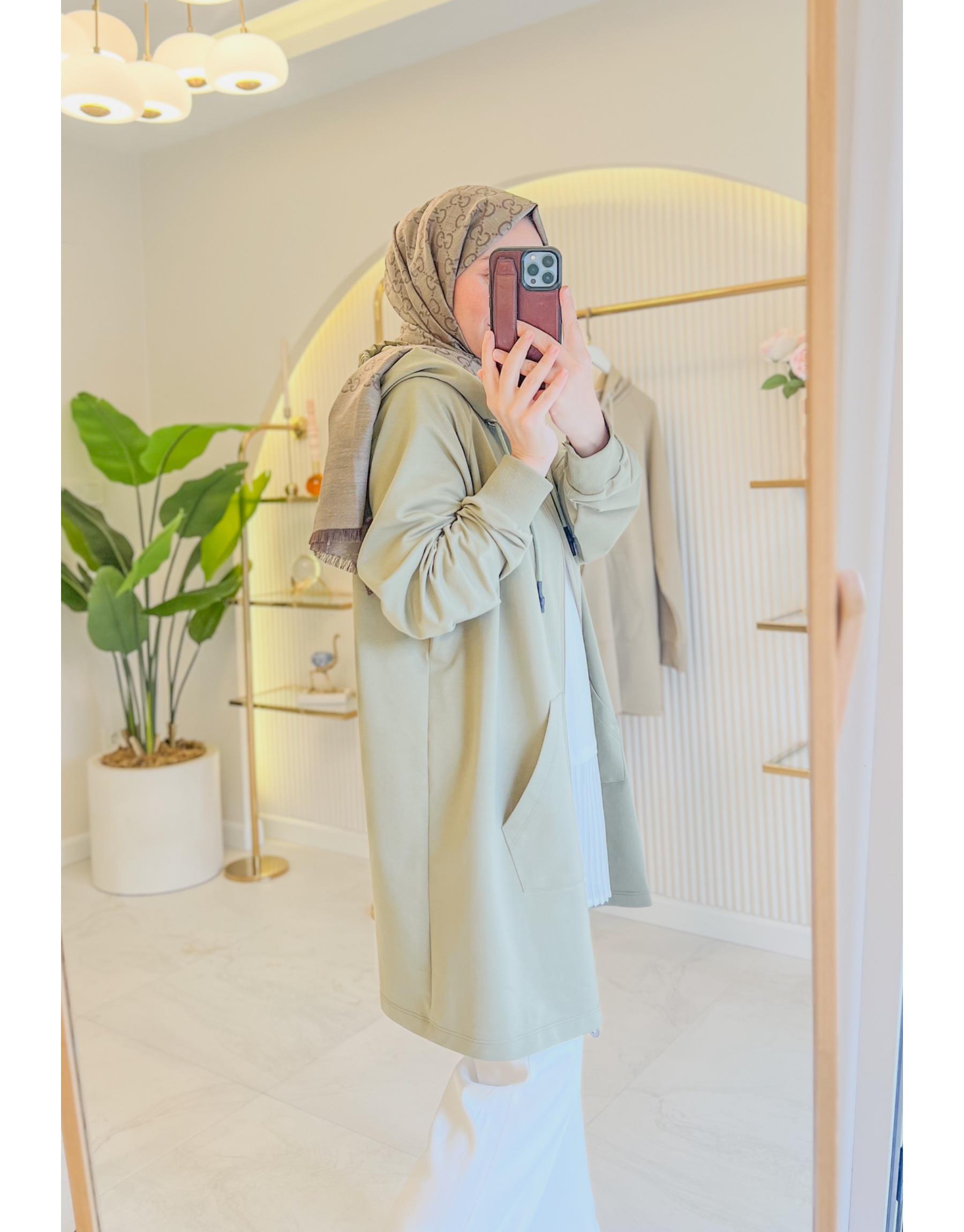 Bayan Açık Çağla MK Fermuarlı Kanguru Cepli Hırka | Merve Karaca