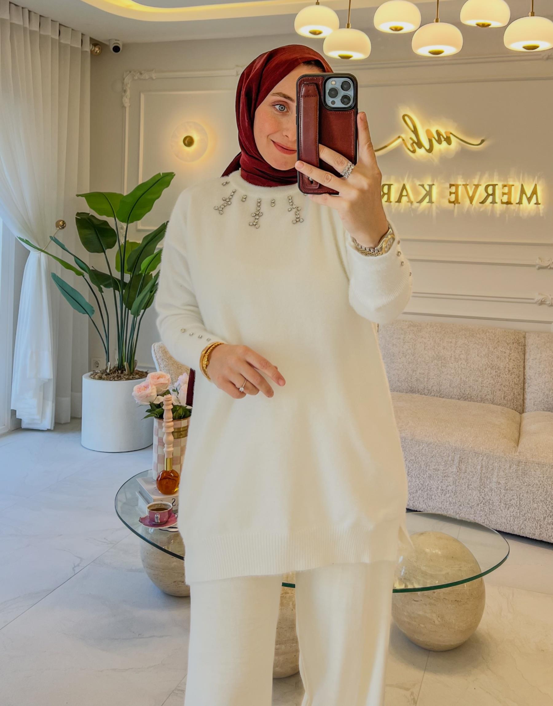 Beyaz 5033 Işıltılı Yumoş Tunik