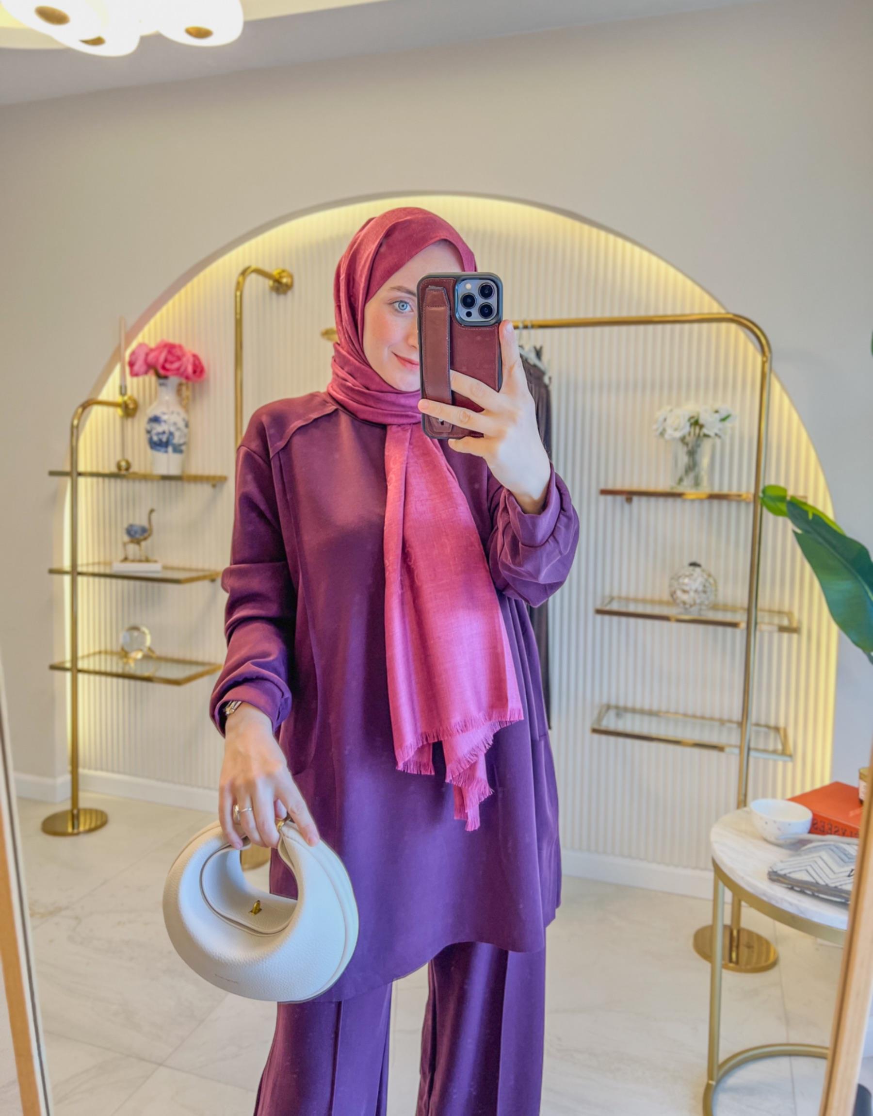 Bayan Bordo 22629 Çima Pantolonlu Modal Takım | Merve Karaca