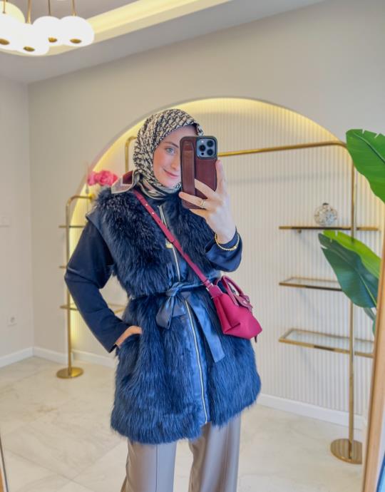 Lacivert Tüylü Yelek