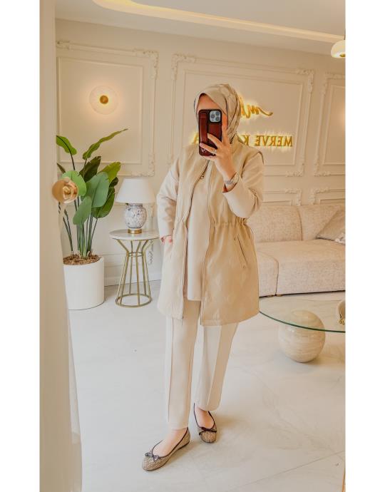 Bej 9269 Baklava Desenli Beli Büzgülü Yelek