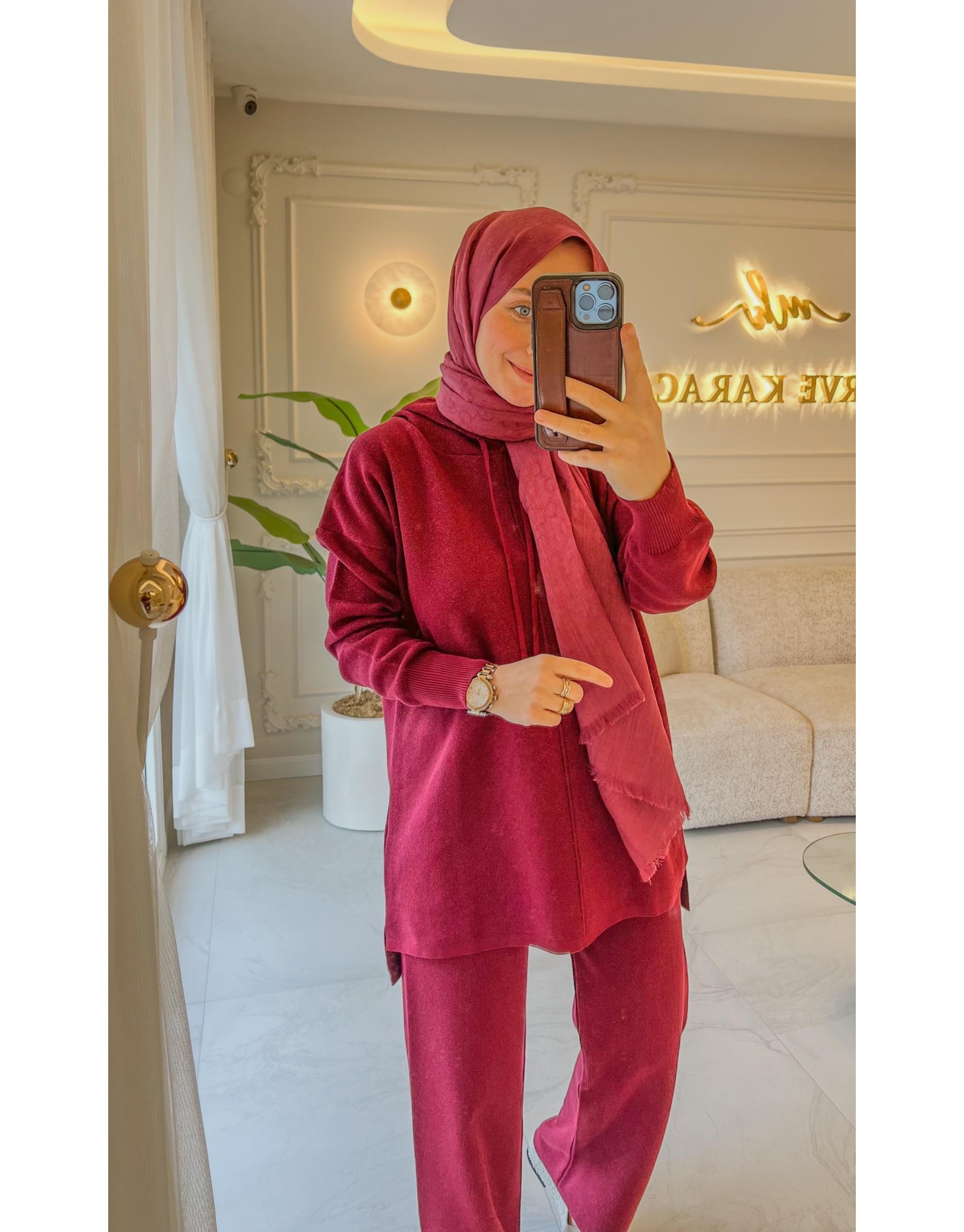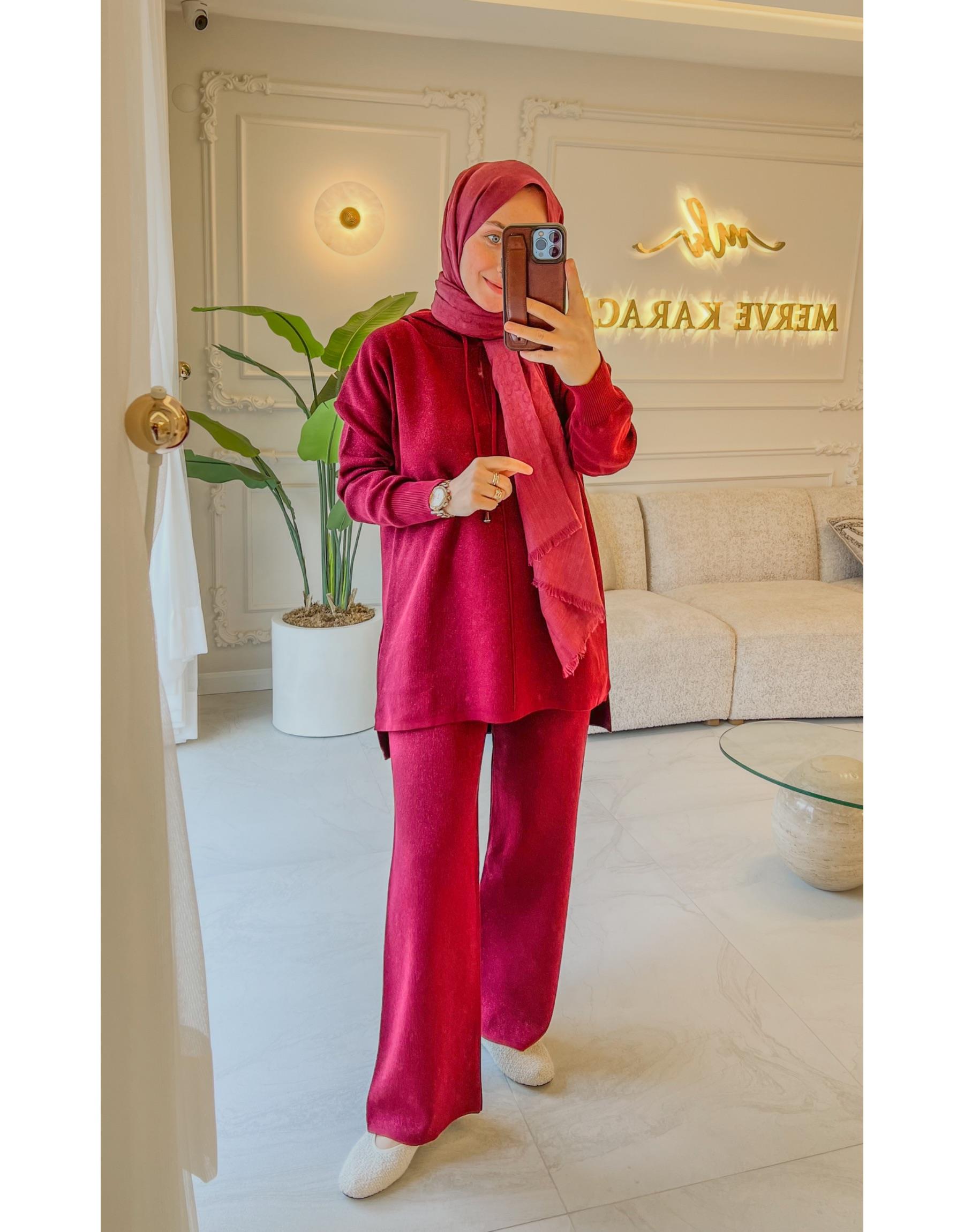 Bordo Kapitone Retro Ceketli Etekli Takım