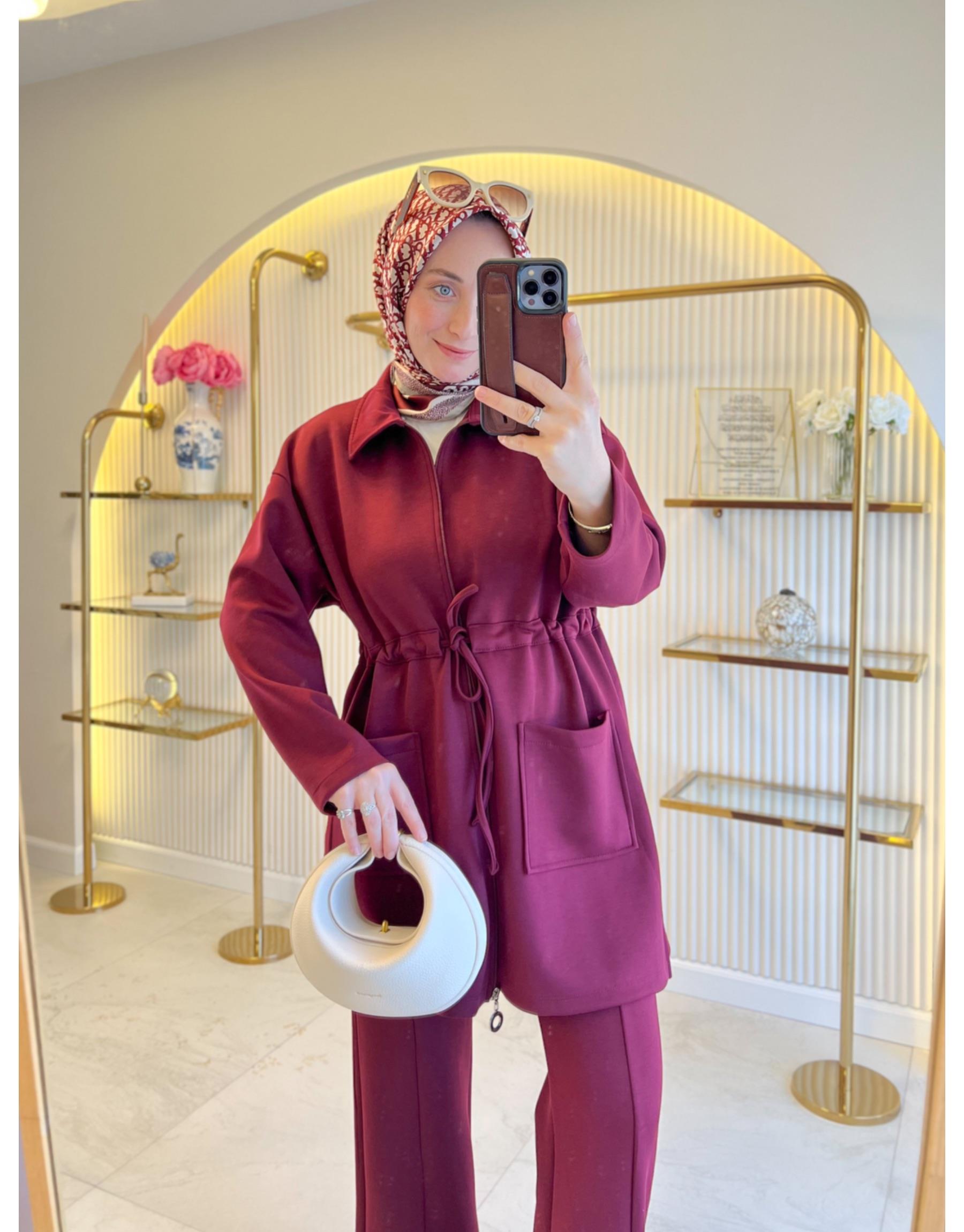 Bayan Bordo Bağlamalı Modal Takım | Merve Karaca