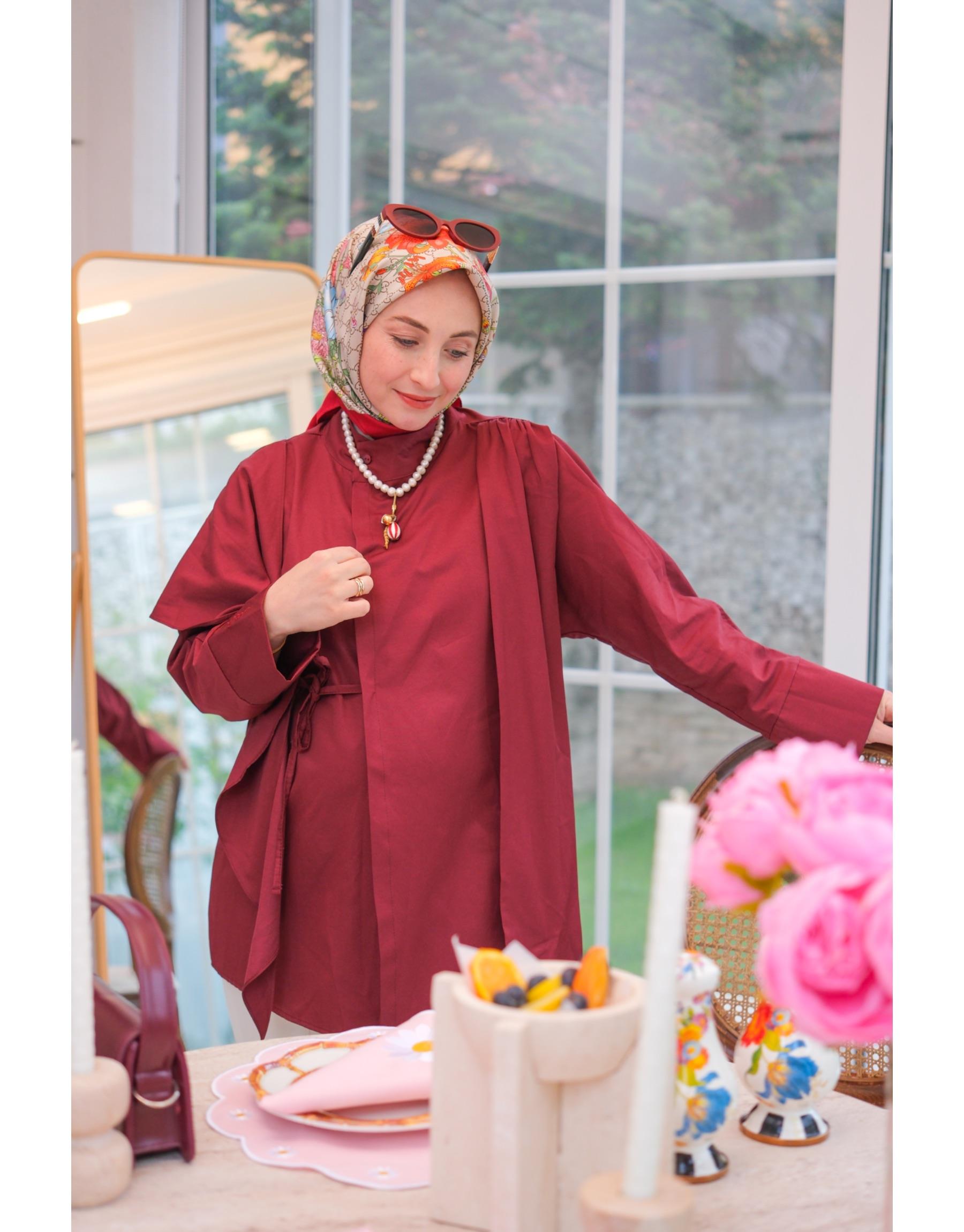 Bayan Bordo Liva Asimetrik Gömlek | Merve Karaca
