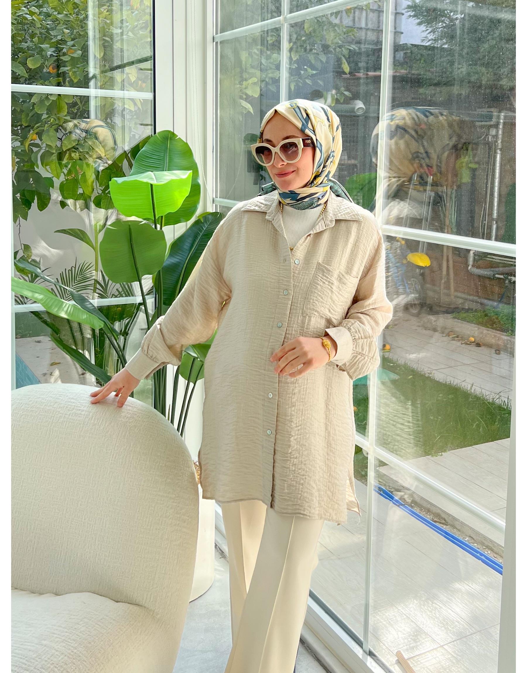 Bayan Ekru 2030 Elen Gömlek | Merve Karaca