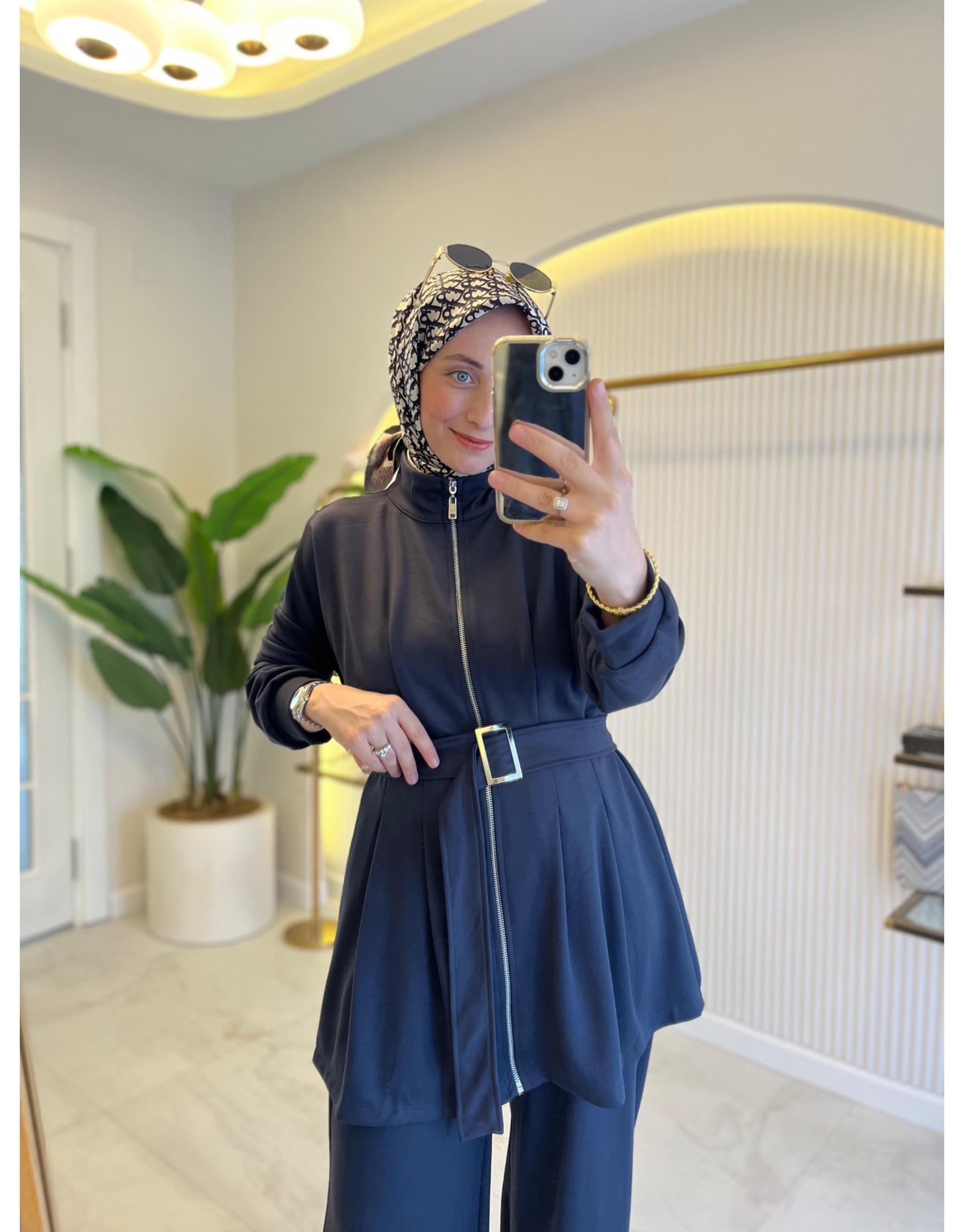 Bayan Gri 22772 Kemerli Modal Takım | Merve Karaca