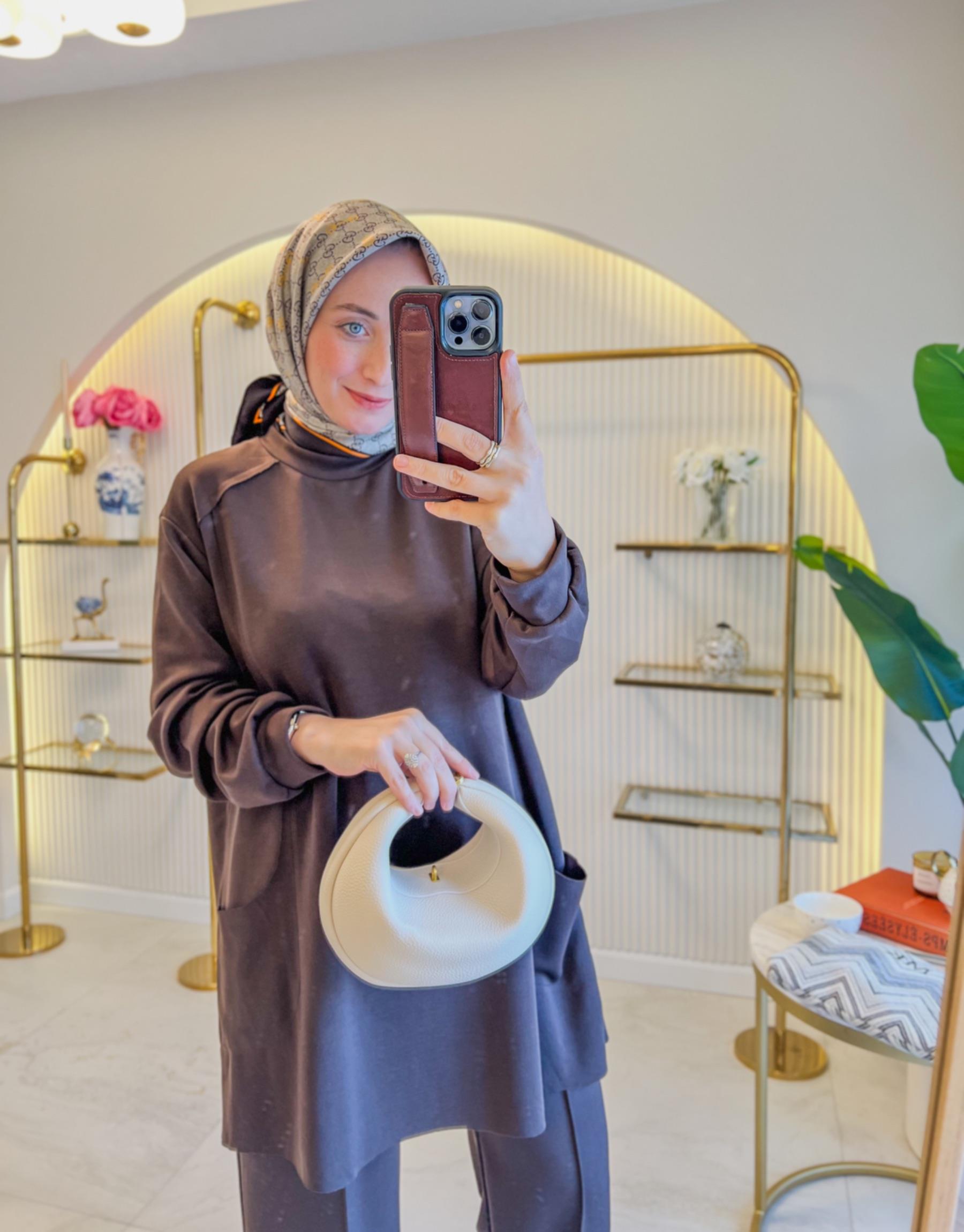 Bayan Kahve 22629 Çima Pantolonlu Modal Takım | Merve Karaca