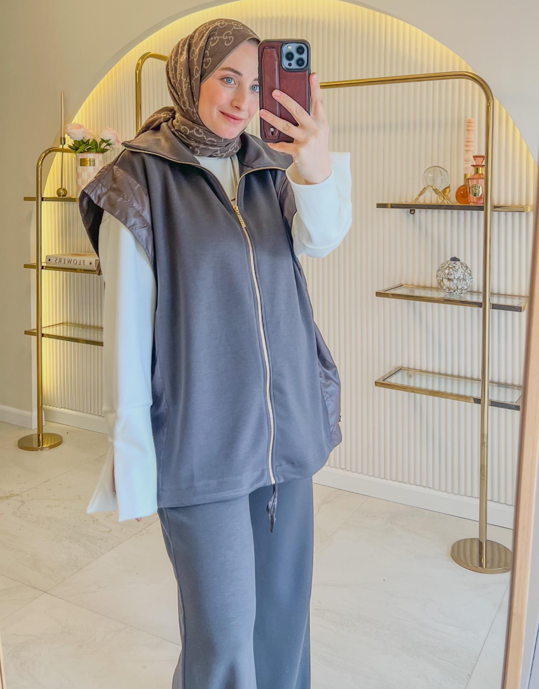 Bayan Kahve 22798 Yelekli Takım | Merve Karaca