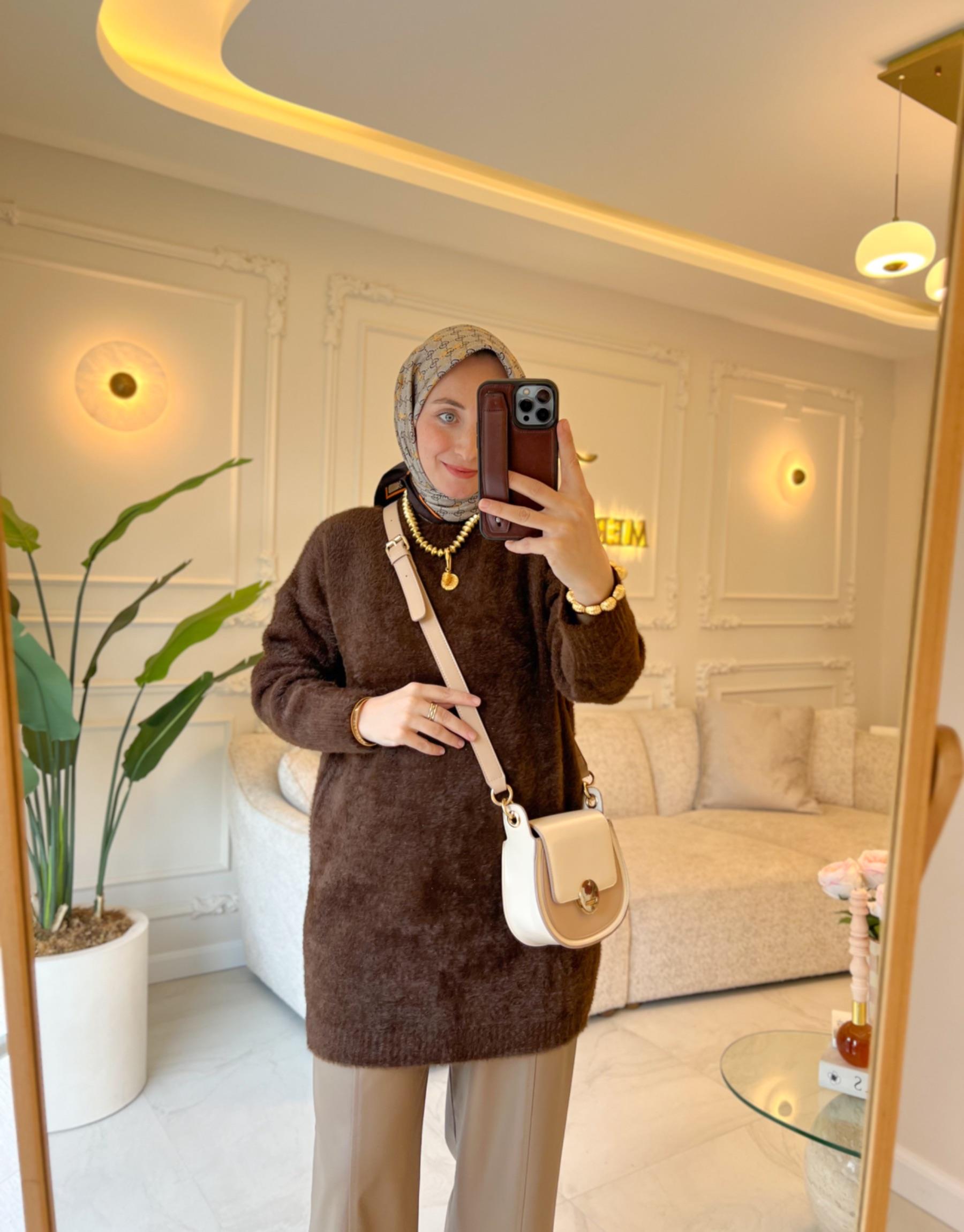 Bayan Kahve 5033 Işıltılı Yumoş Tunik | Merve Karaca