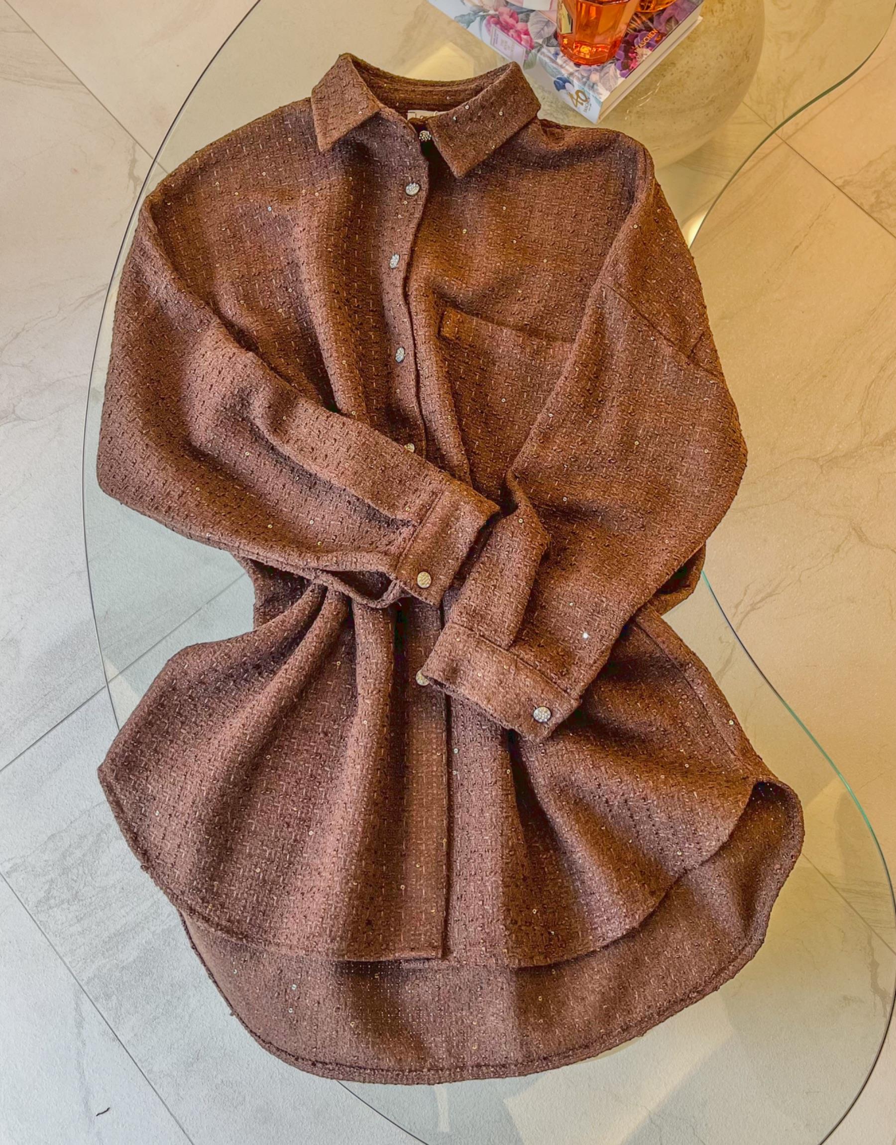 Bayan Kahve Pullu Tüvit Taş Düğmeli Gömlek | Merve Karaca