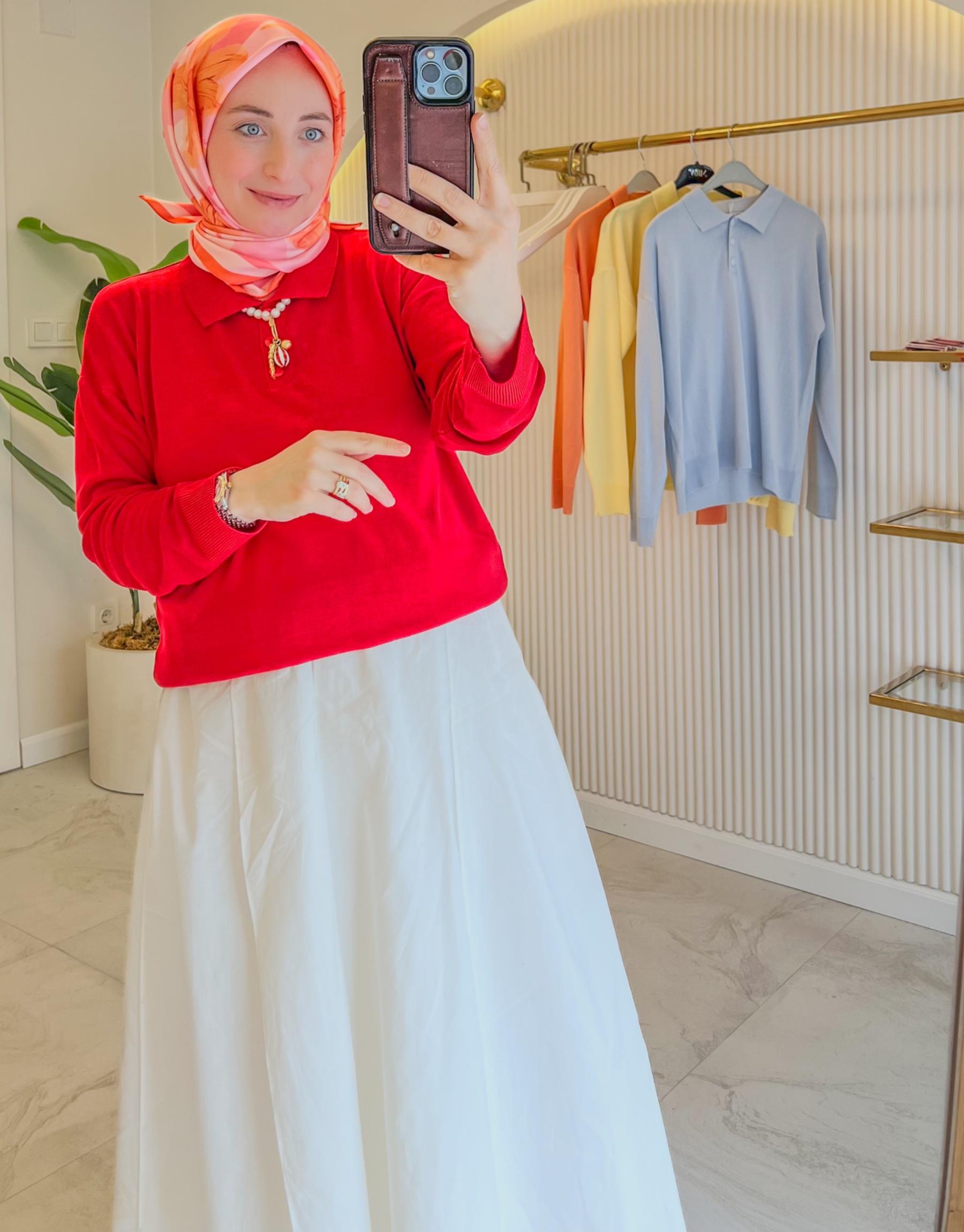 Bayan Kırmızı 1790 Basıc Triko | Merve Karaca