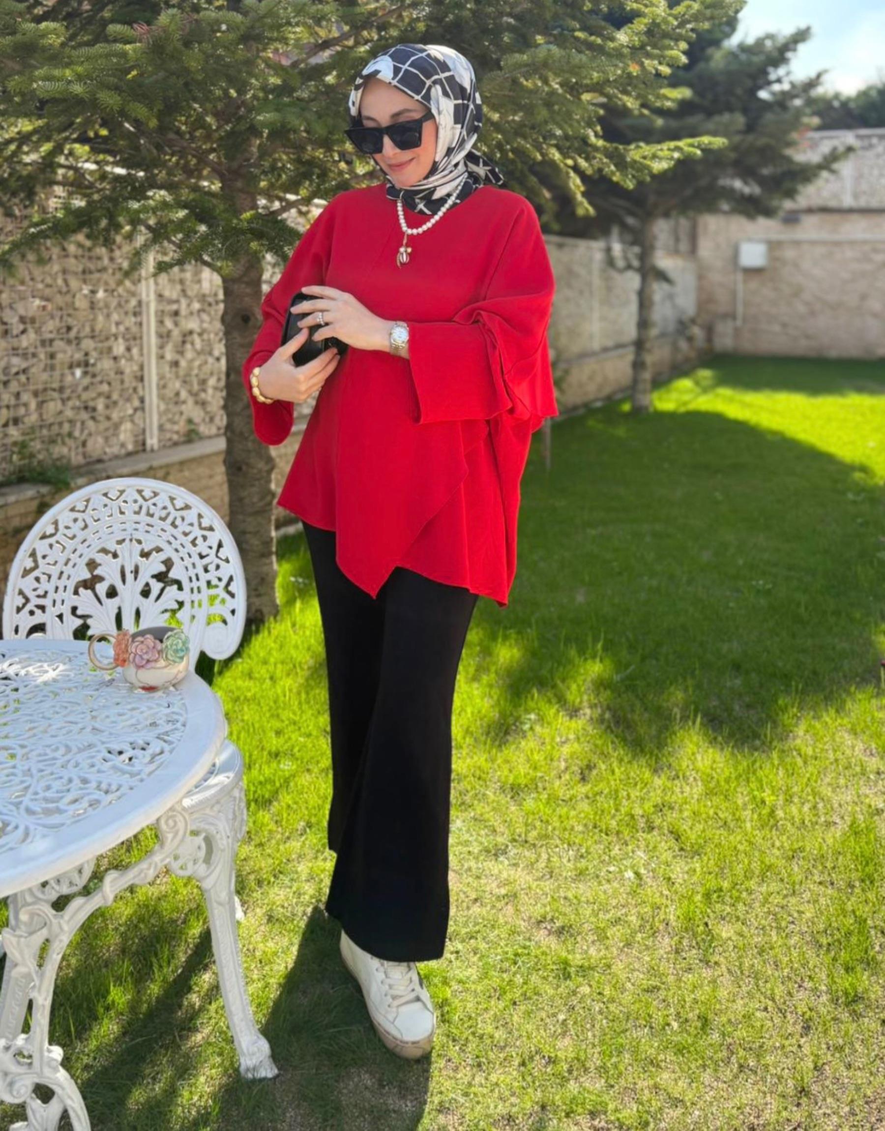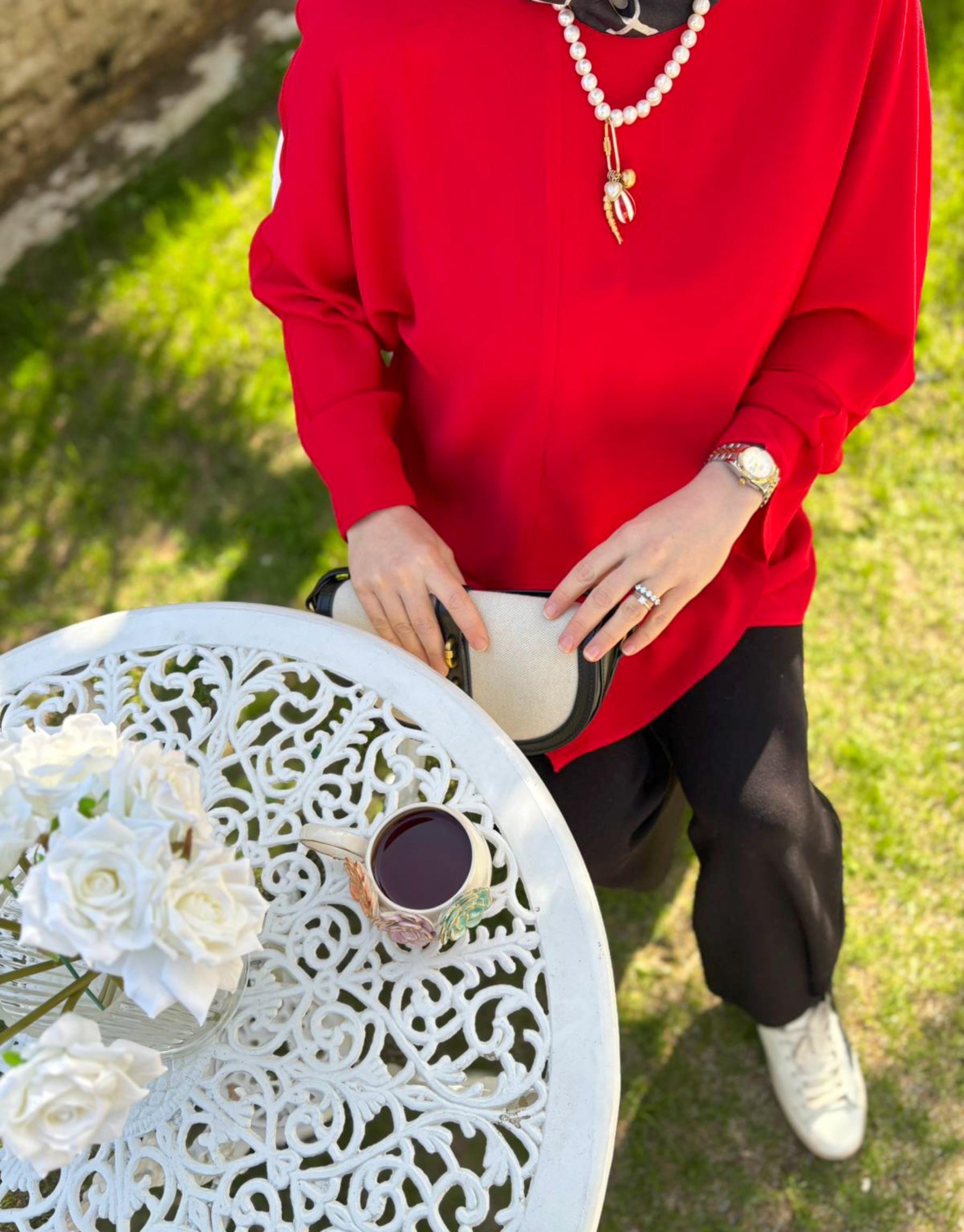 Bayan Kırmızı Clera Krep Tunik | Merve Karaca