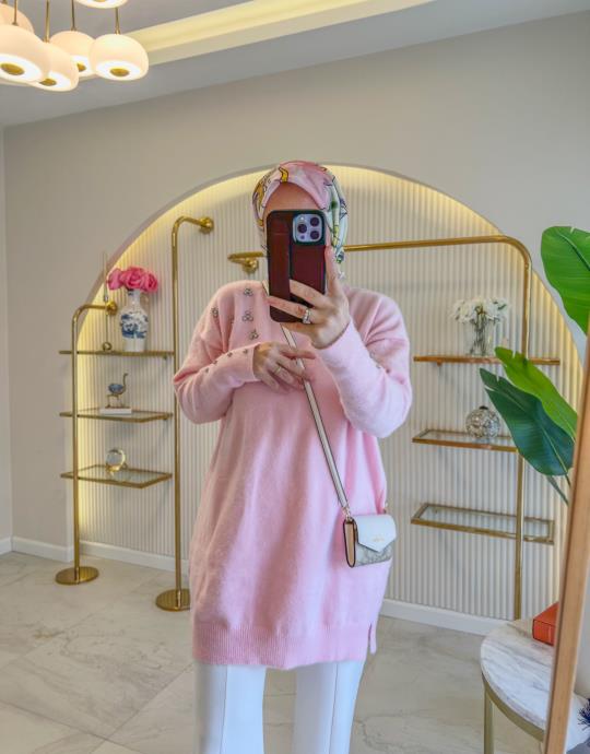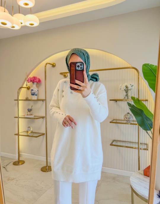 Bayan Krem 4130 İkili Triko Elbise Takım | Merve Karaca