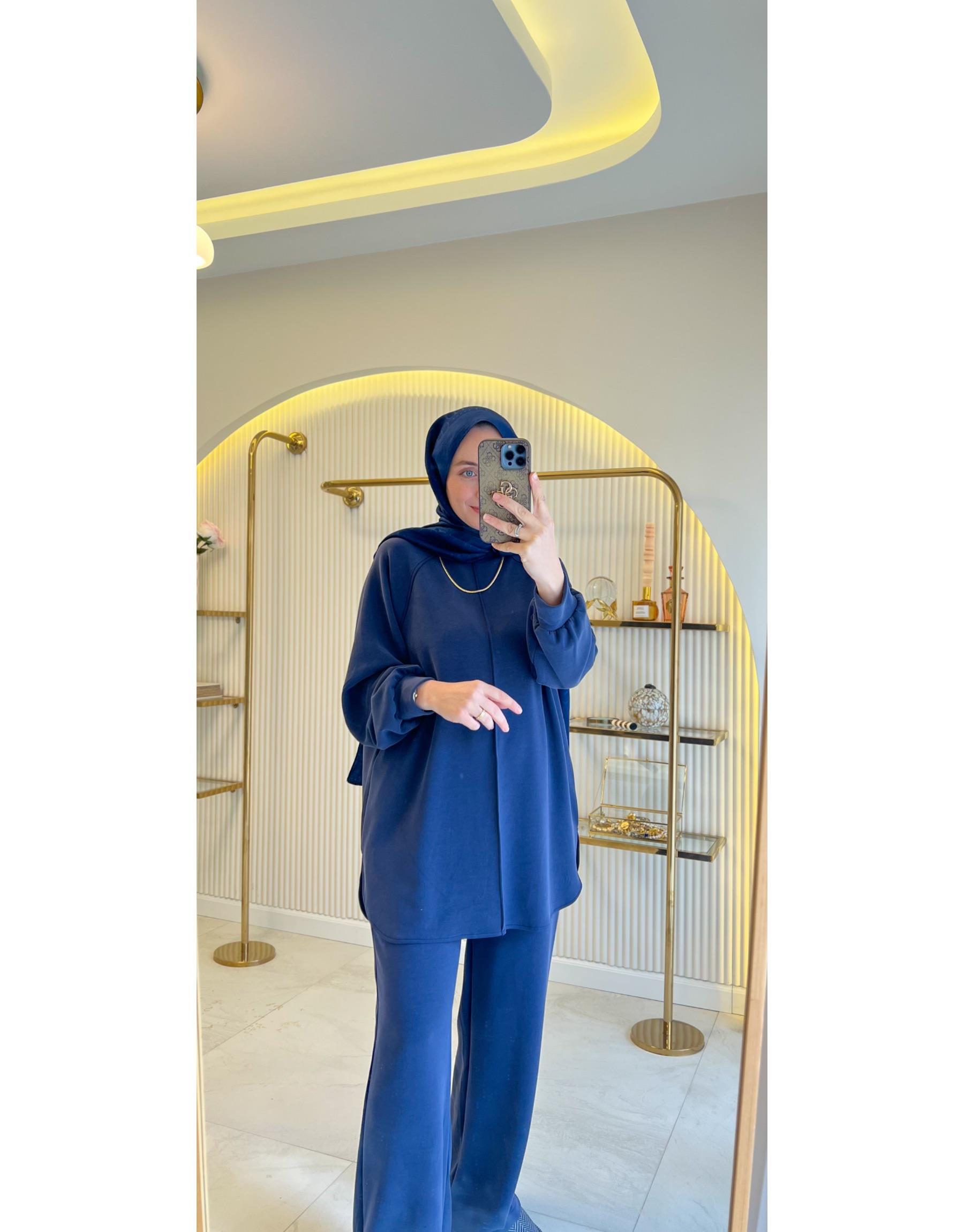 Lacivert Kapitone Retro Ceketli Etekli Takım