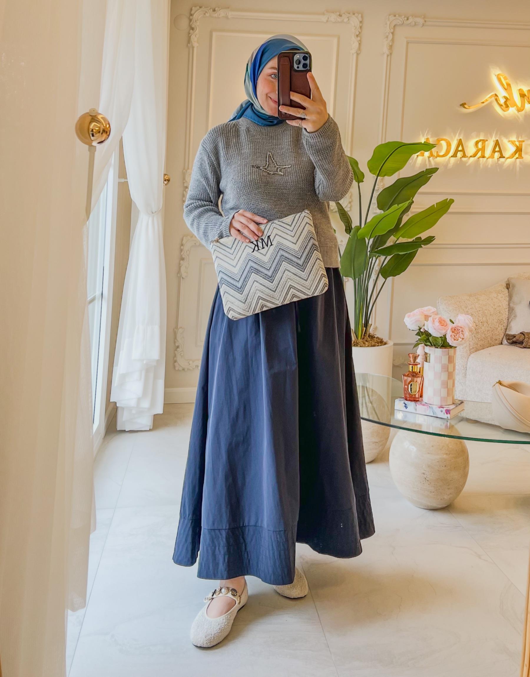 Bayan Lacivert 552 Beli Lastikli Koton Etek | Merve Karaca
