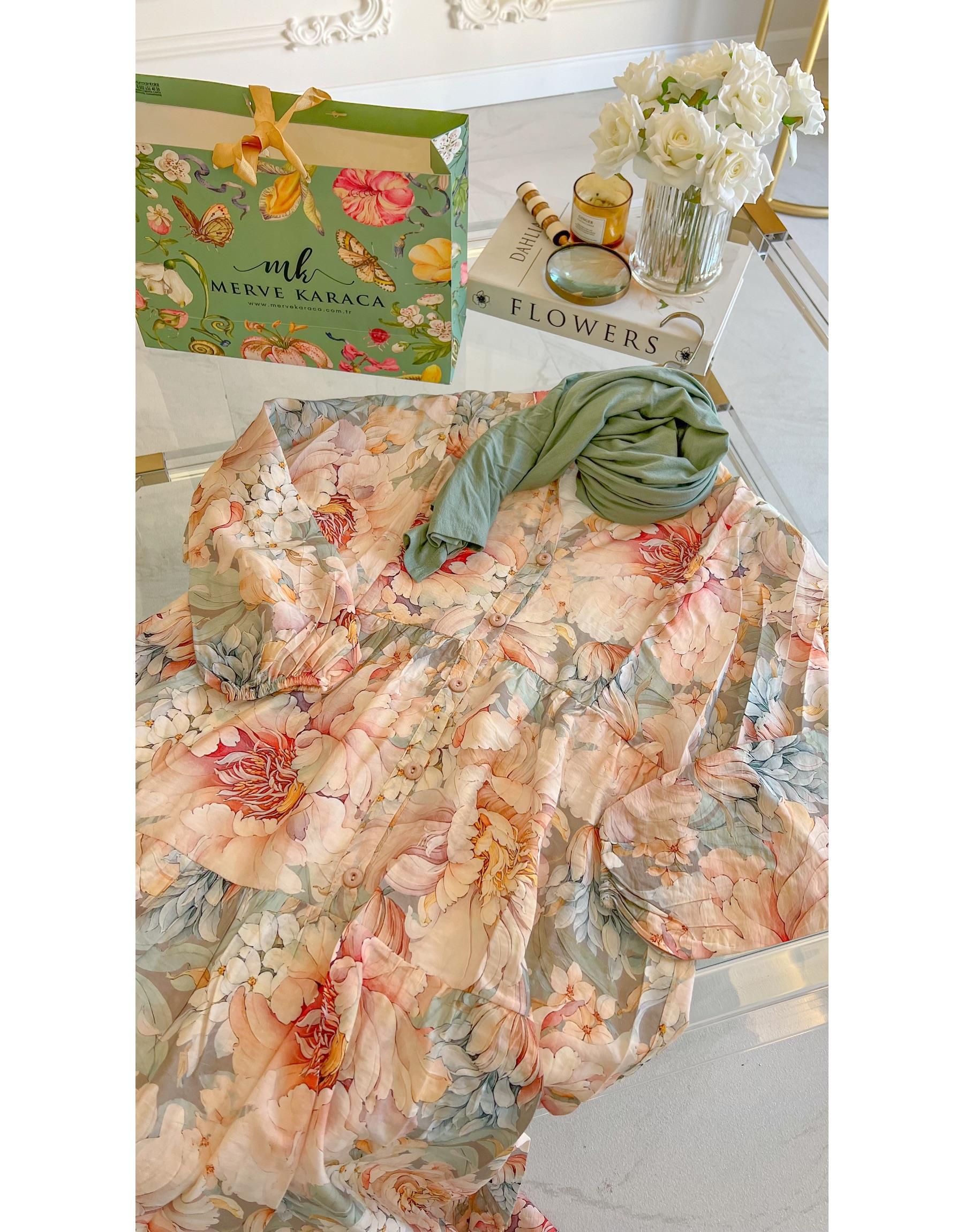 Bayan Mint Hollanda Gülü Elbise | Merve Karaca
