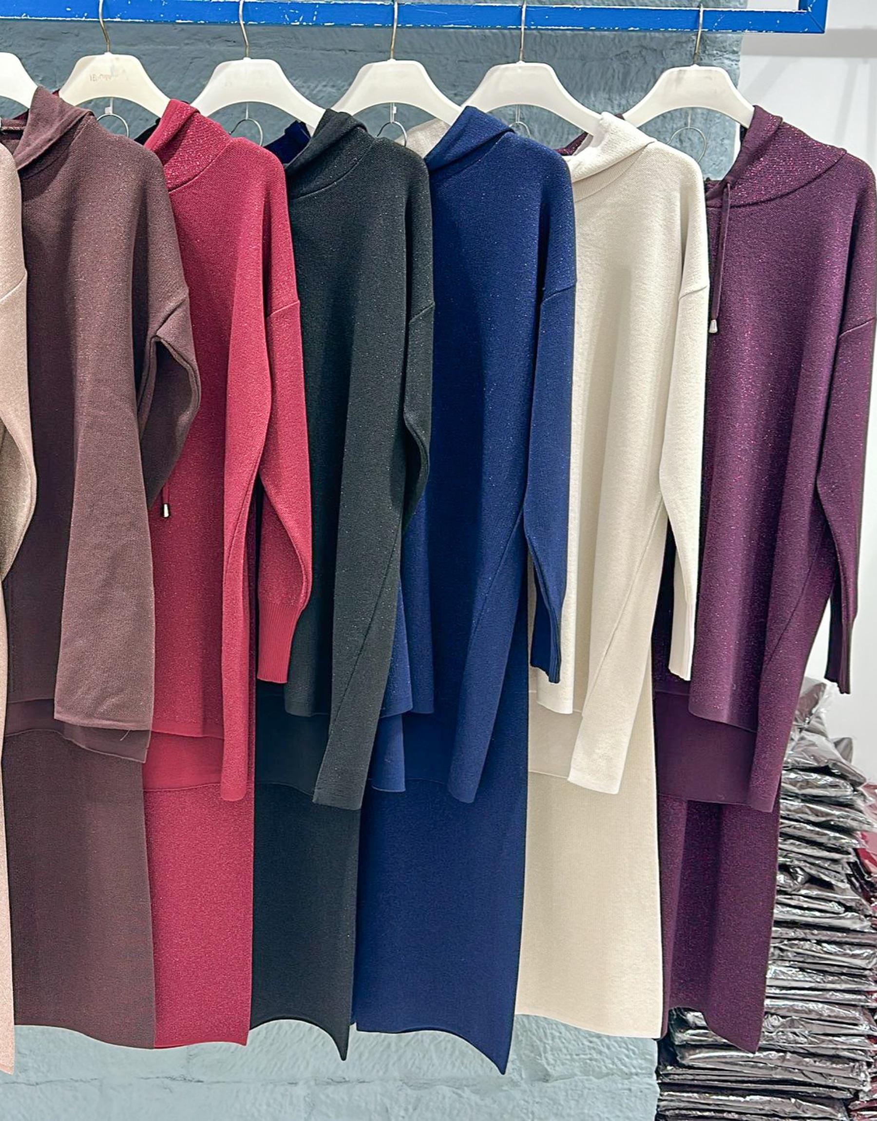 Bayan Mürdüm 4158 Simli Kapüşonlu Triko Takım | Merve Karaca