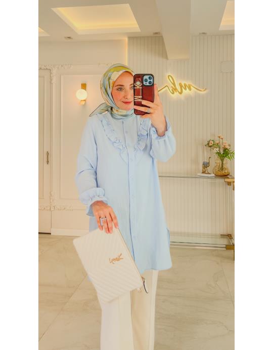 Pastel Mavi New Elsa Fırfırlı Gömlek