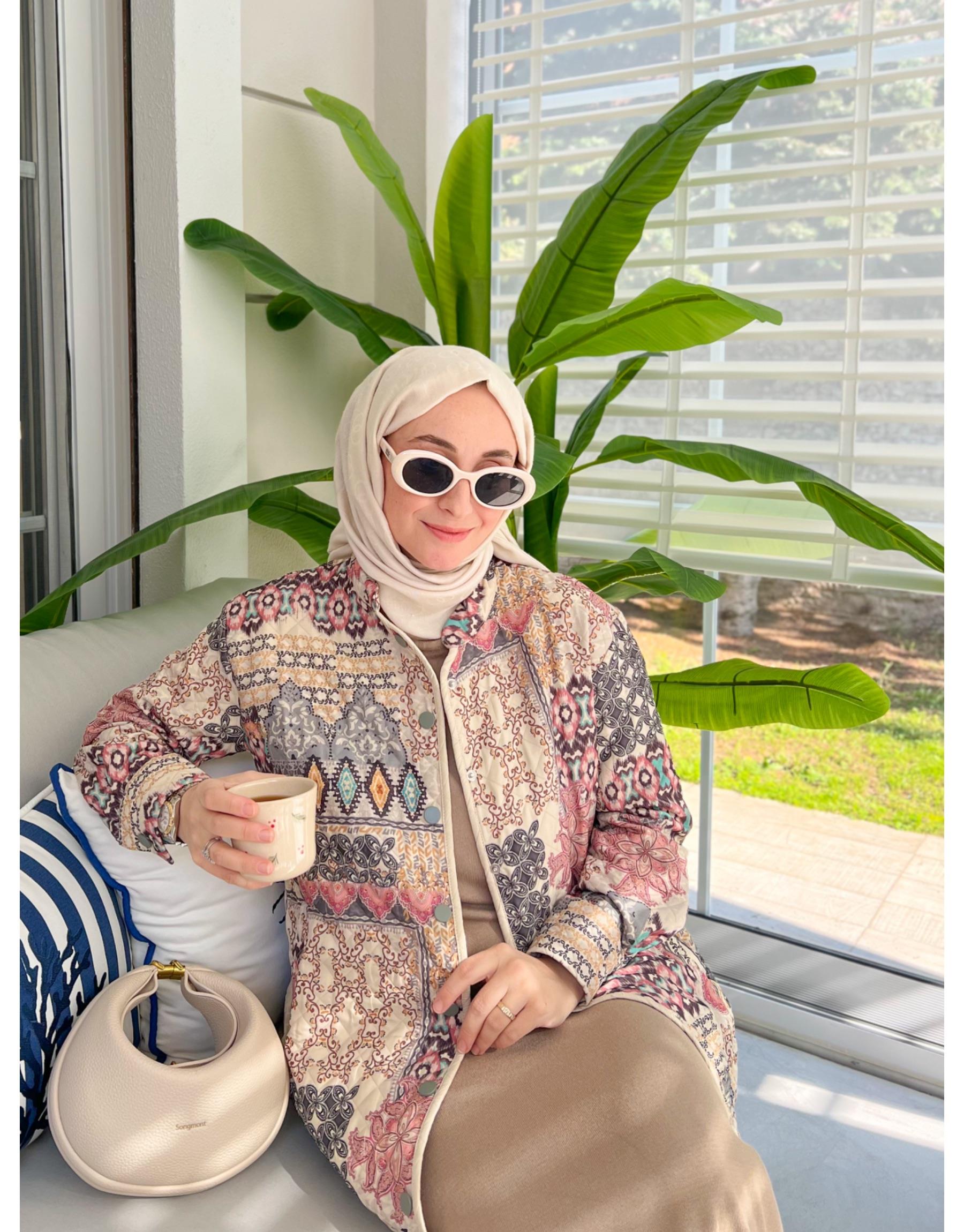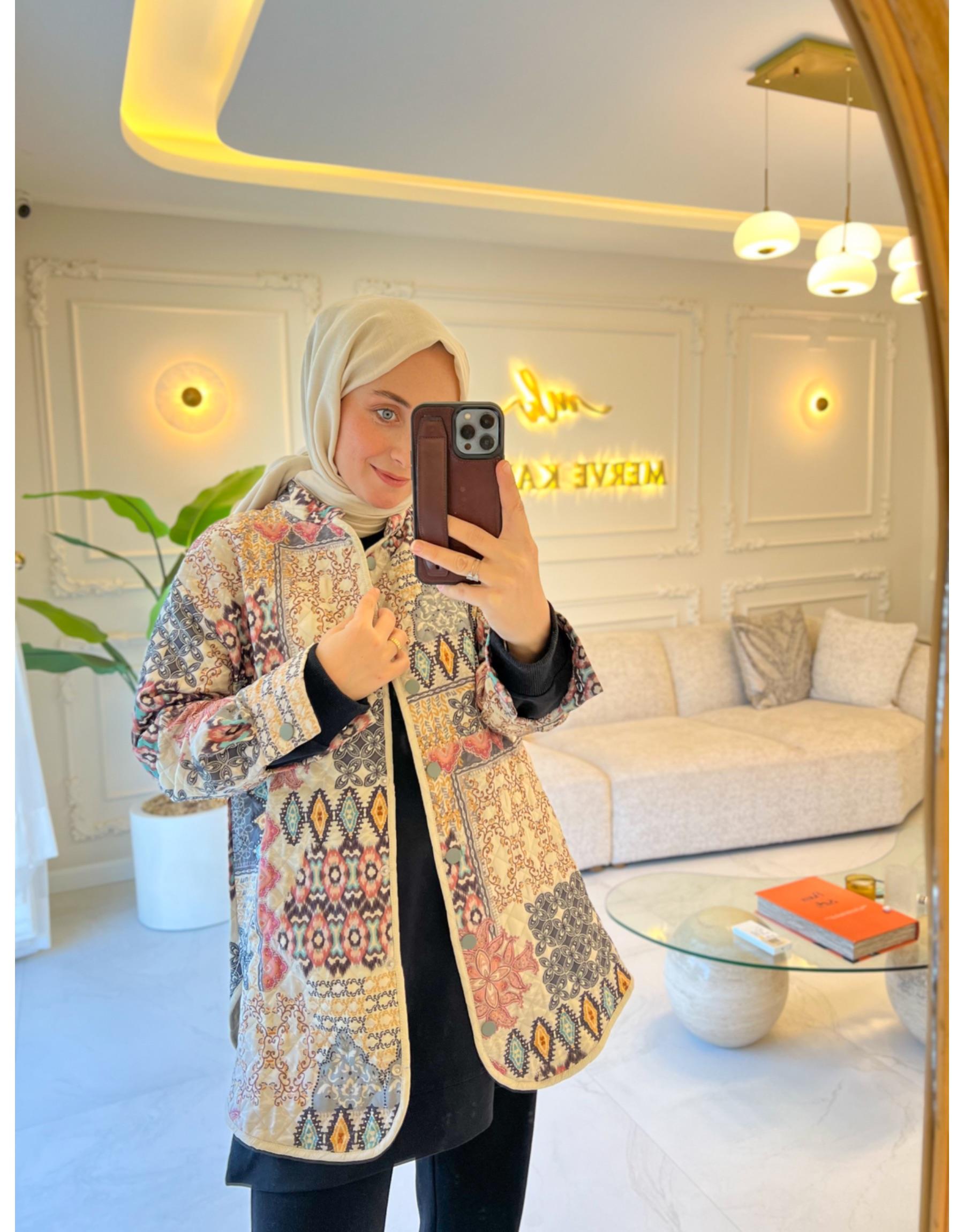 Bayan Pembe Retro Desen Kapitone Ceket | Merve Karaca