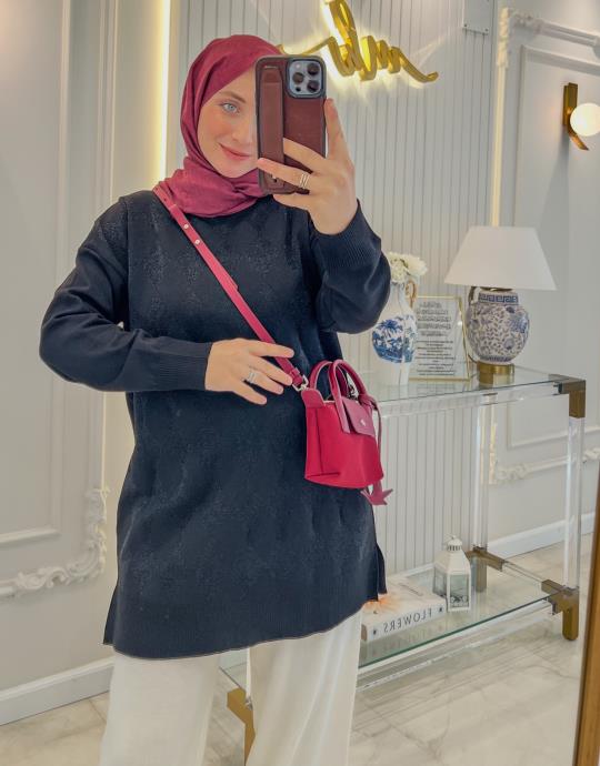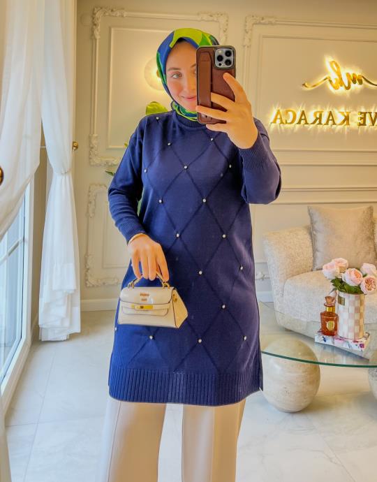Lacivert 5045 Baklava Desen Simli Triko Tunik
