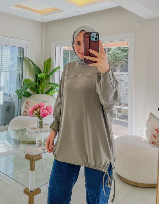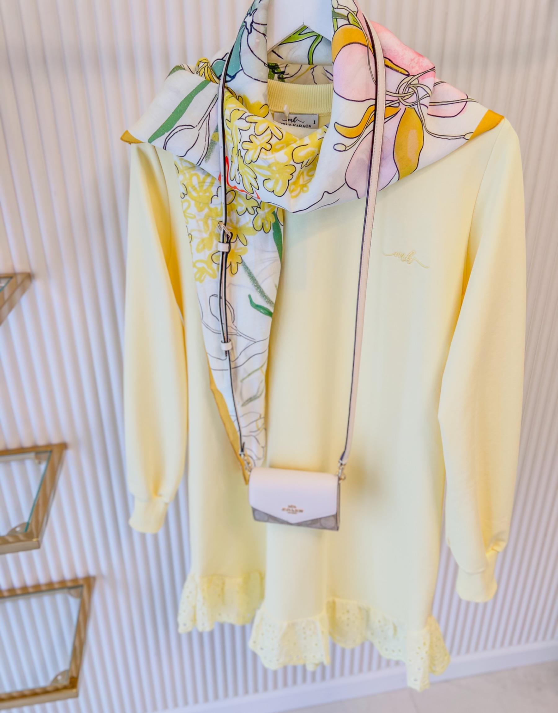 Bayan Sarı MK Etek Ucu Dantelli Sweat | Merve Karaca