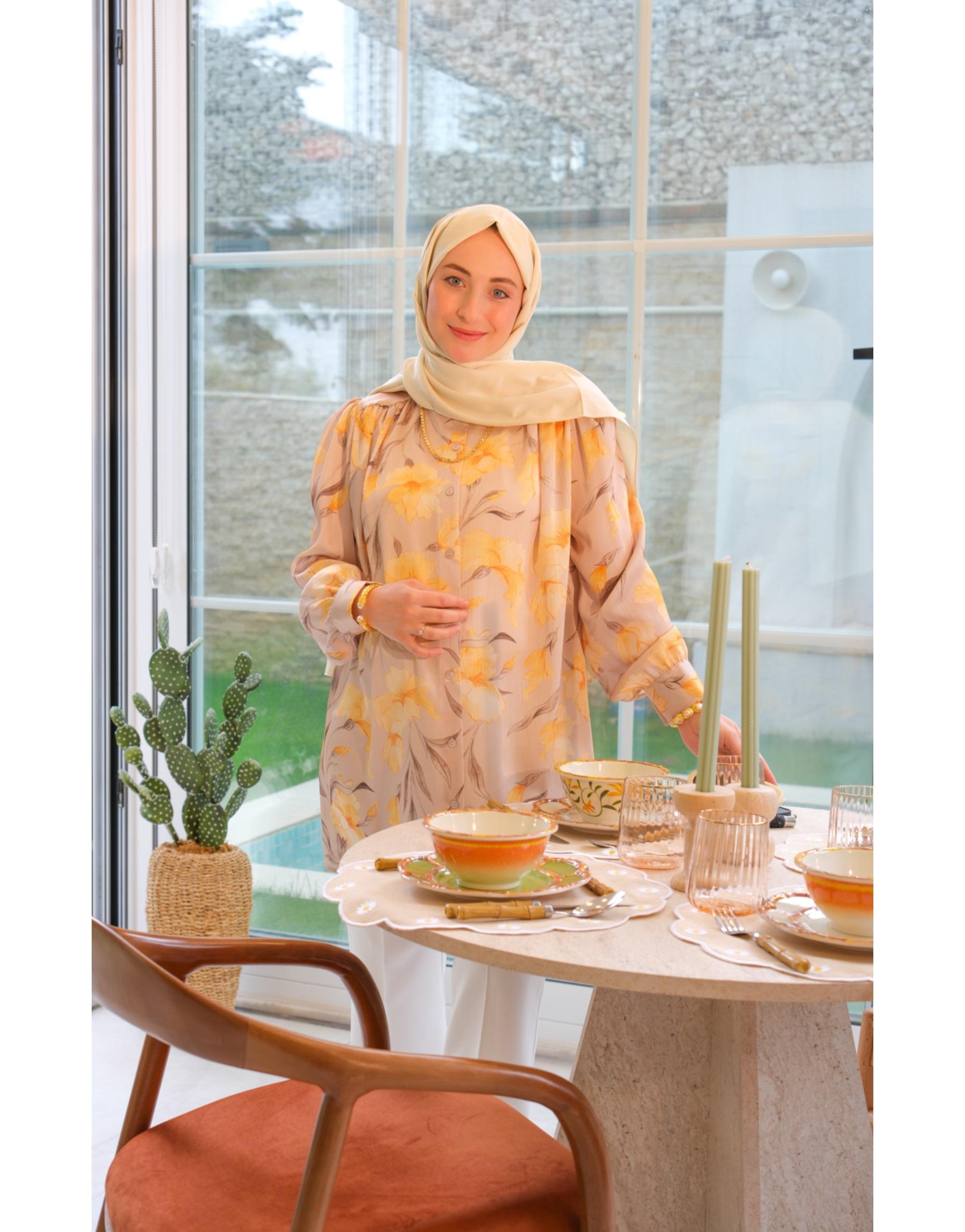 Bayan Sarı Sofia İpek Yoryo Gömlek | Merve Karaca