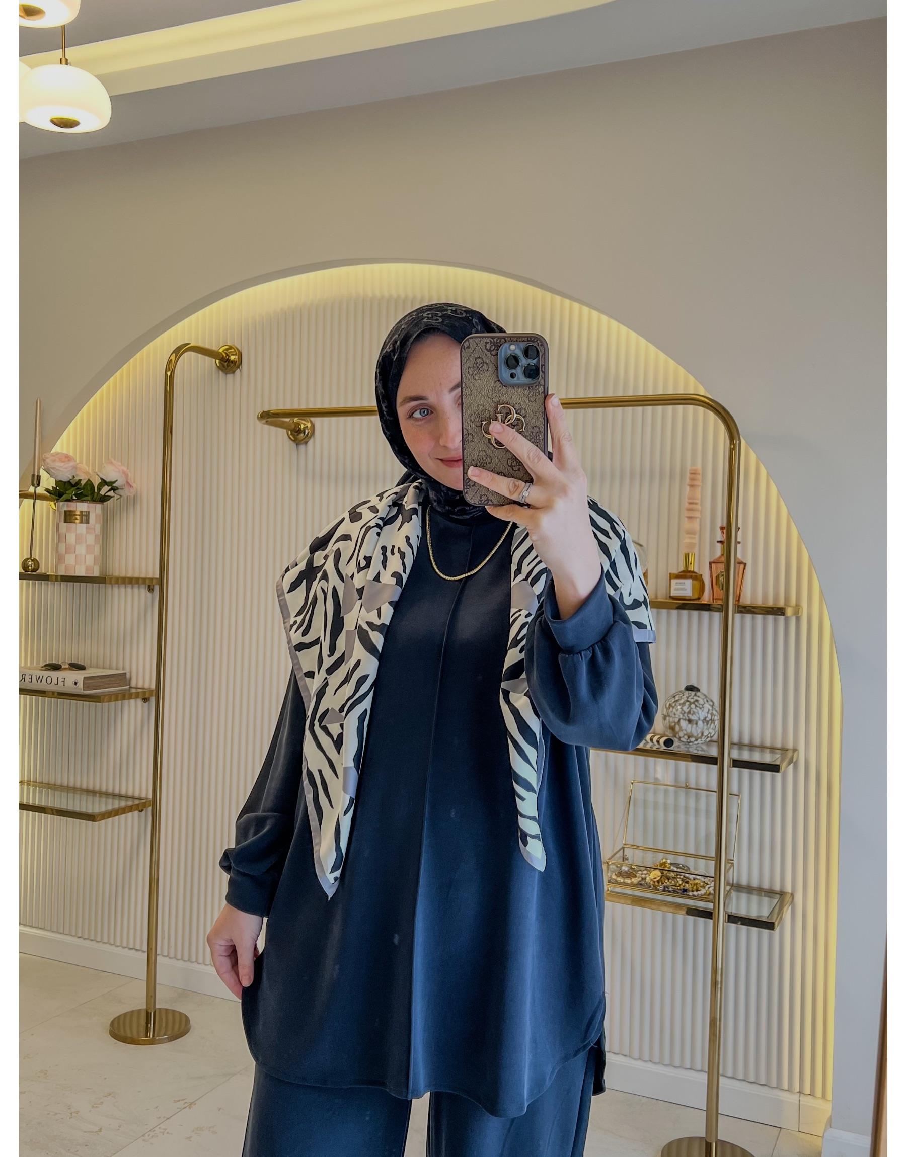 Bayan Siyah 22800 Önden Dikiş Detaylı Modal Takım | Merve Karaca