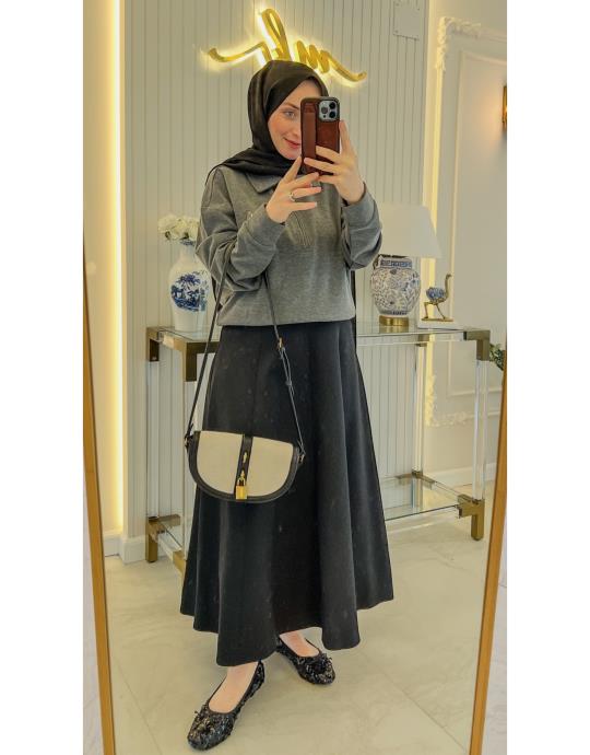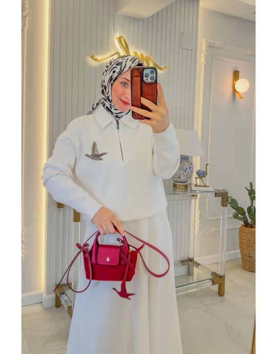 Beyaz Yakalı Etek Üstü Birds Sweat