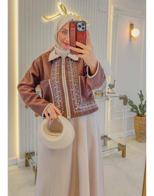 Kahve 20719 Etek Üstü İşlemeli Ceket