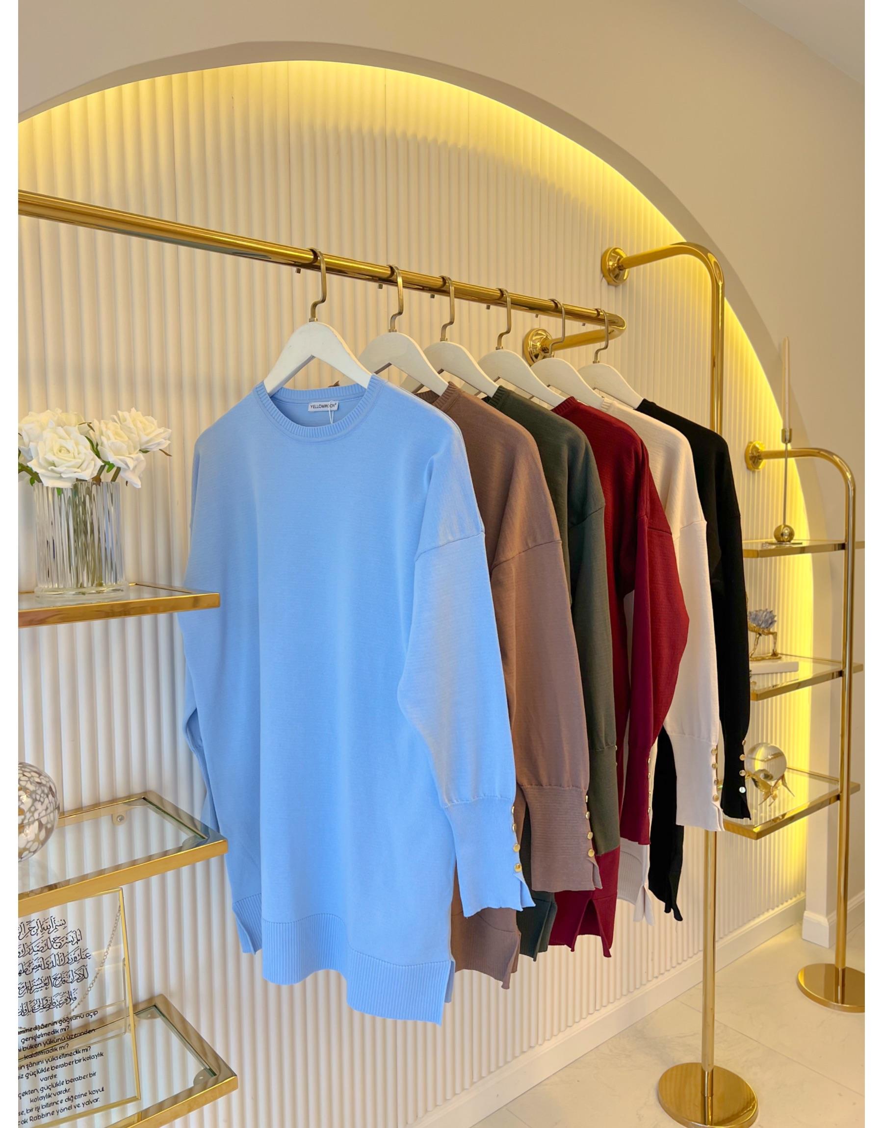 Bayan Siyah 4106 Kolu Düğmeli Triko Tunik | Merve Karaca