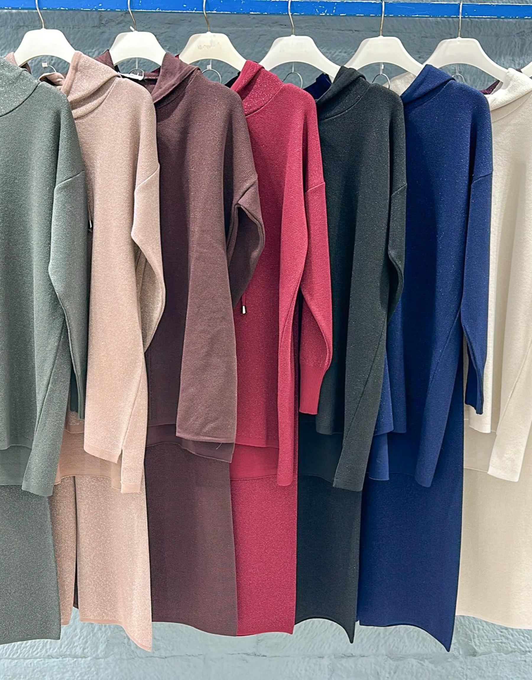Bayan Siyah 4158 Simli Kapüşonlu Triko Takım | Merve Karaca