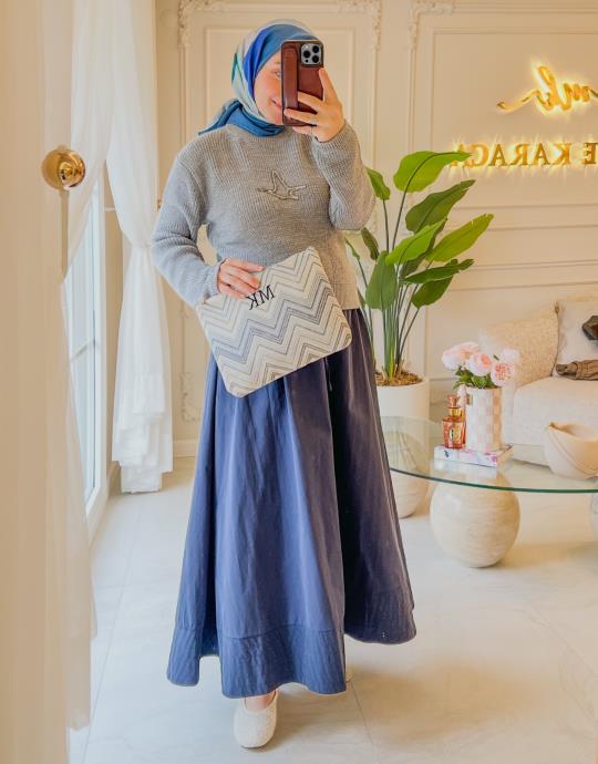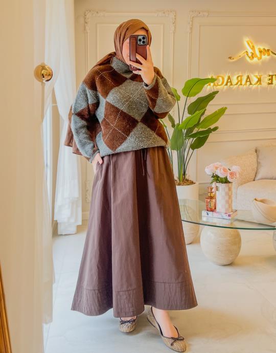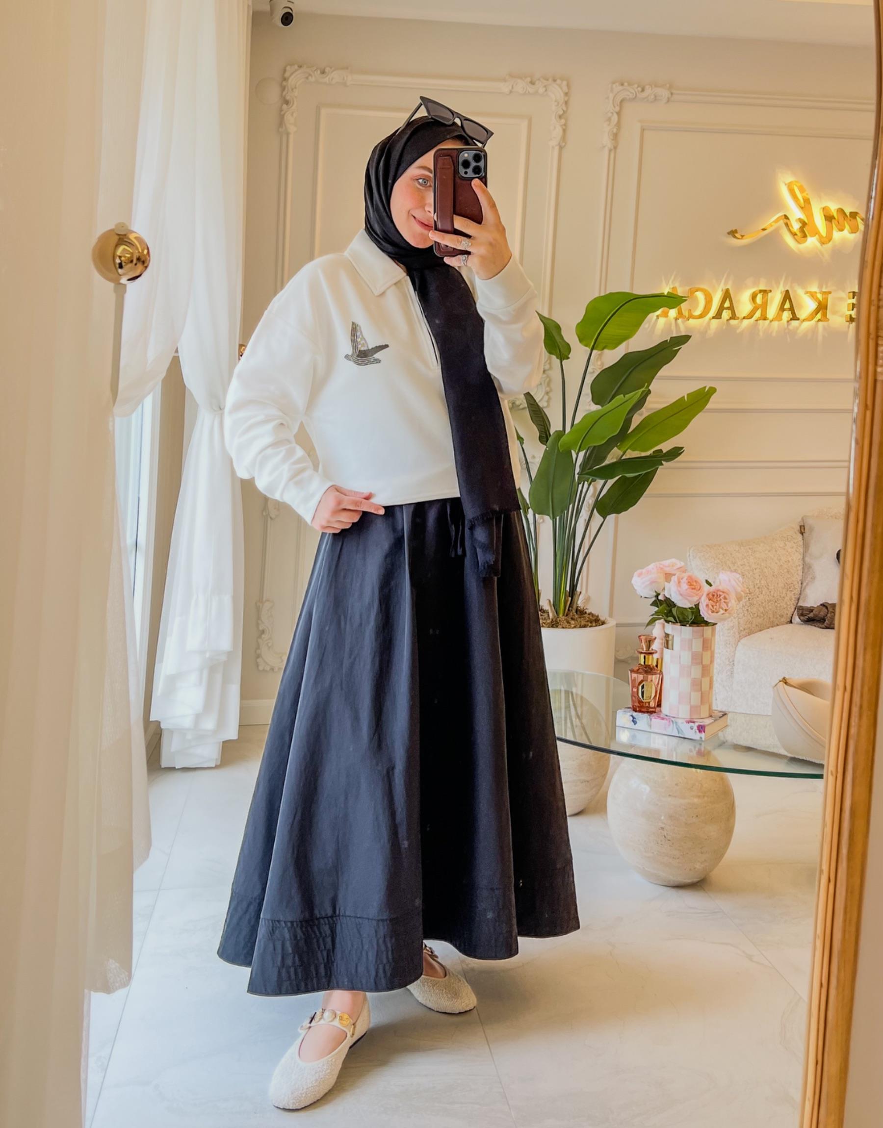 Bayan Siyah 552 Beli Lastikli Koton Etek | Merve Karaca