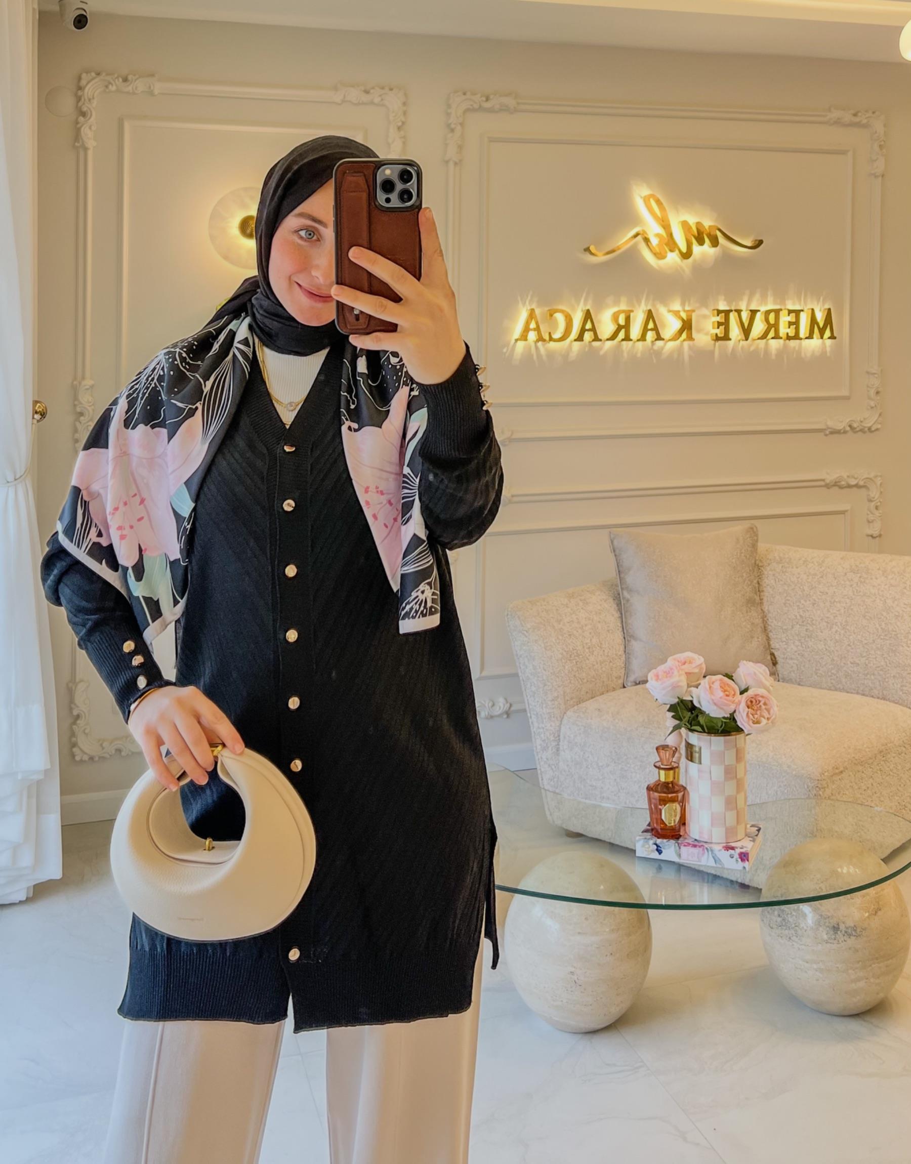 Bayan Siyah Balık Kılçığı Triko Hırka | Merve Karaca