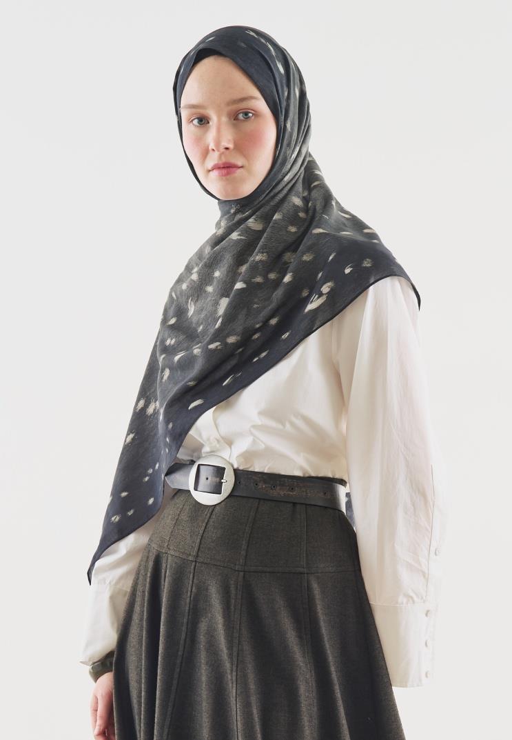 Bayan Siyah Fawn Desenli Pamuk Viskon Şal | Merve Karaca