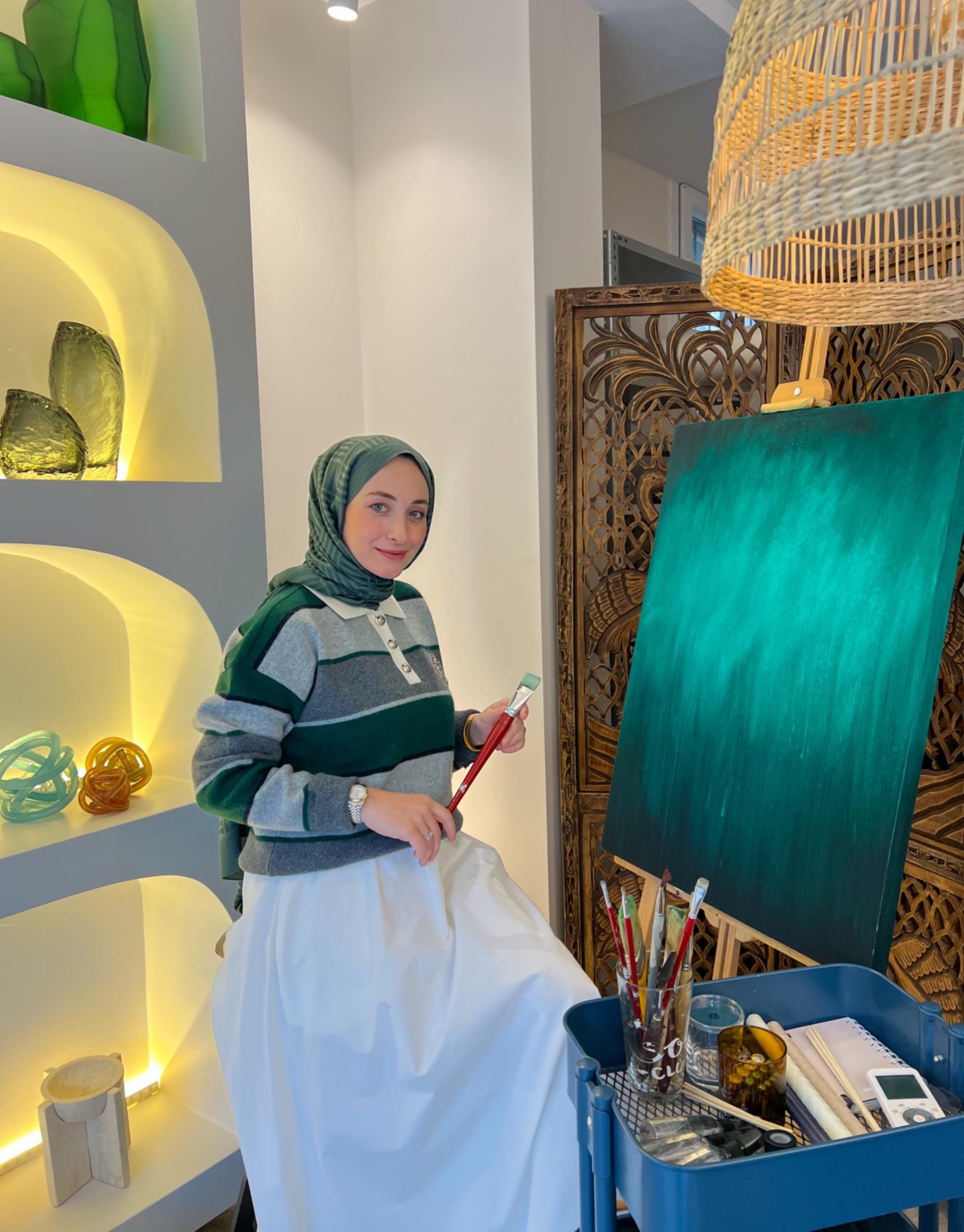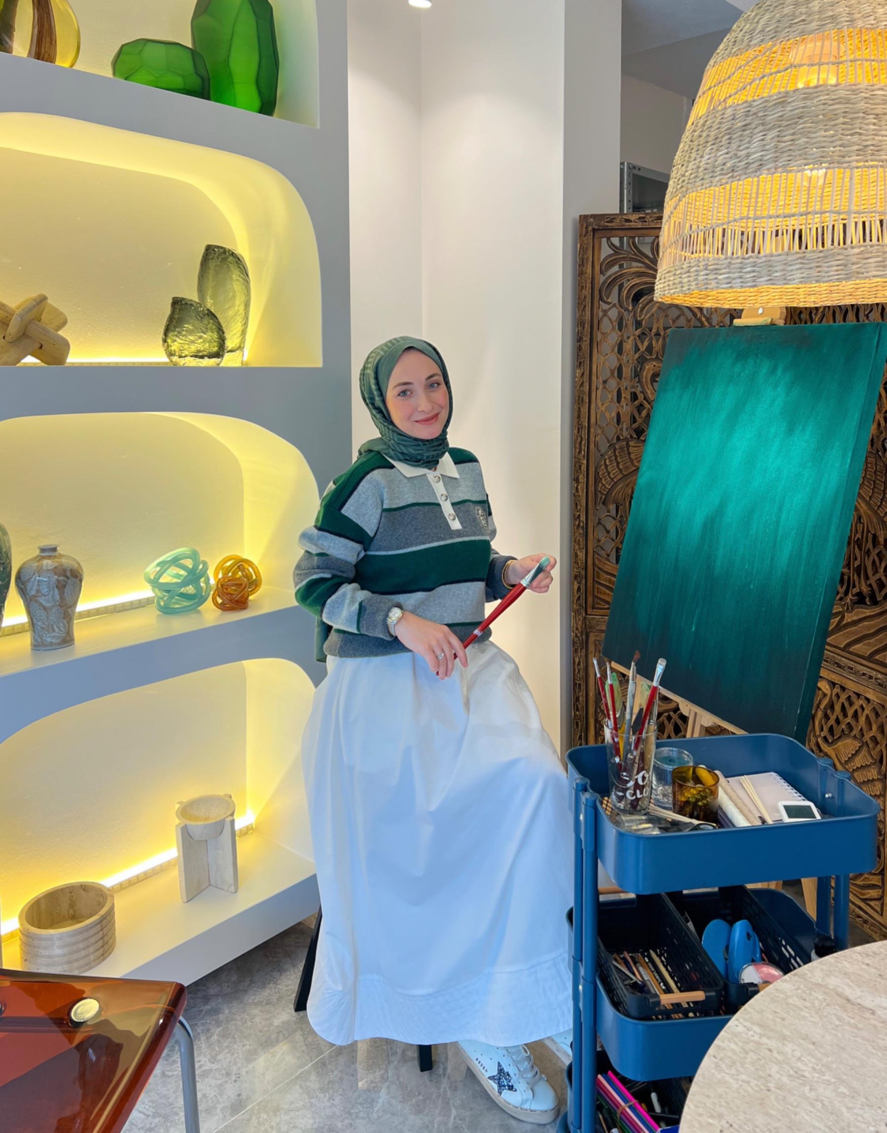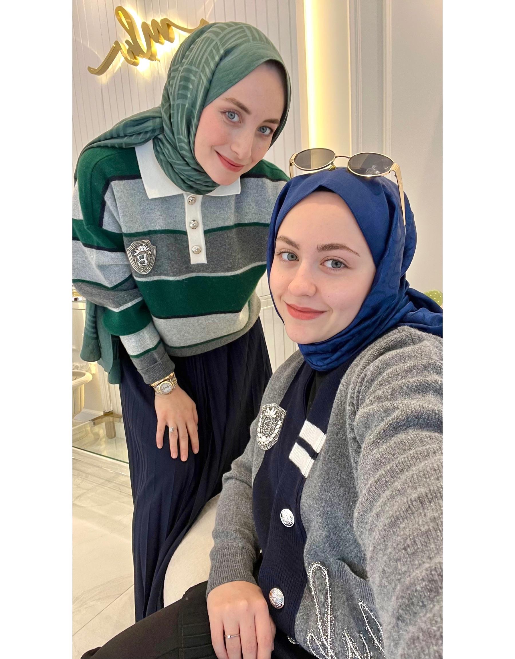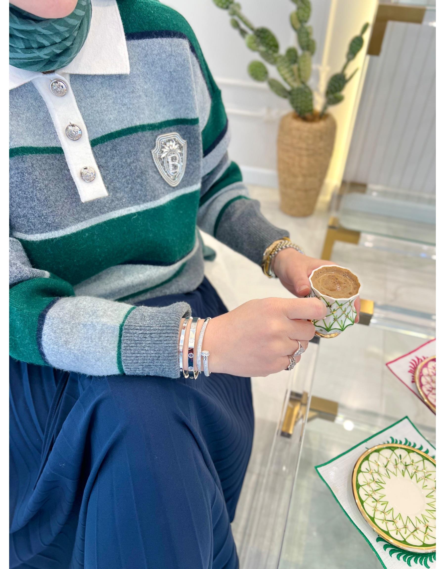 Yeşil Arma Detaylı Etek Üstü Çizgili Triko