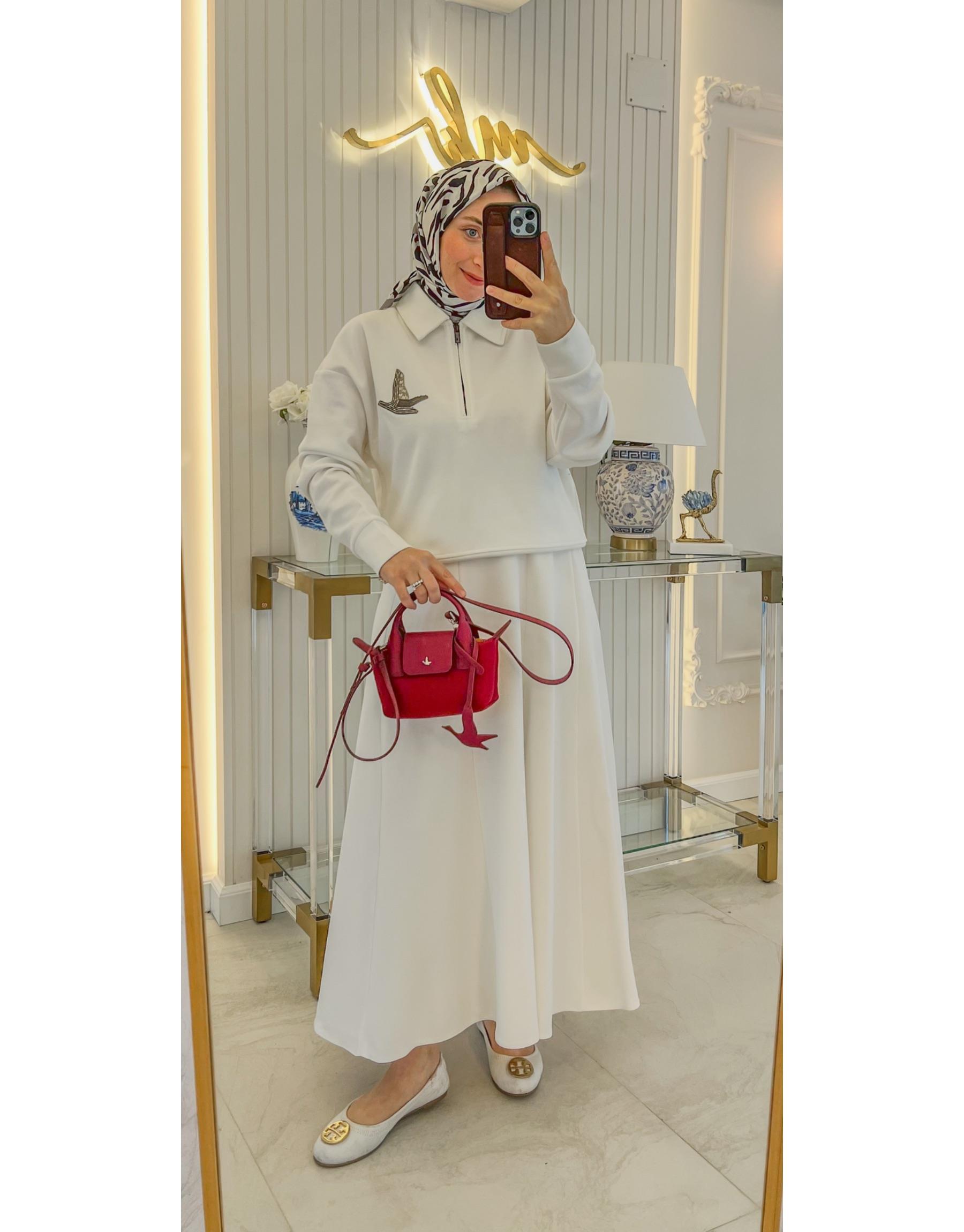 Bayan Beyaz 18202 Parçalı Fermuarlı Etek | Merve Karaca