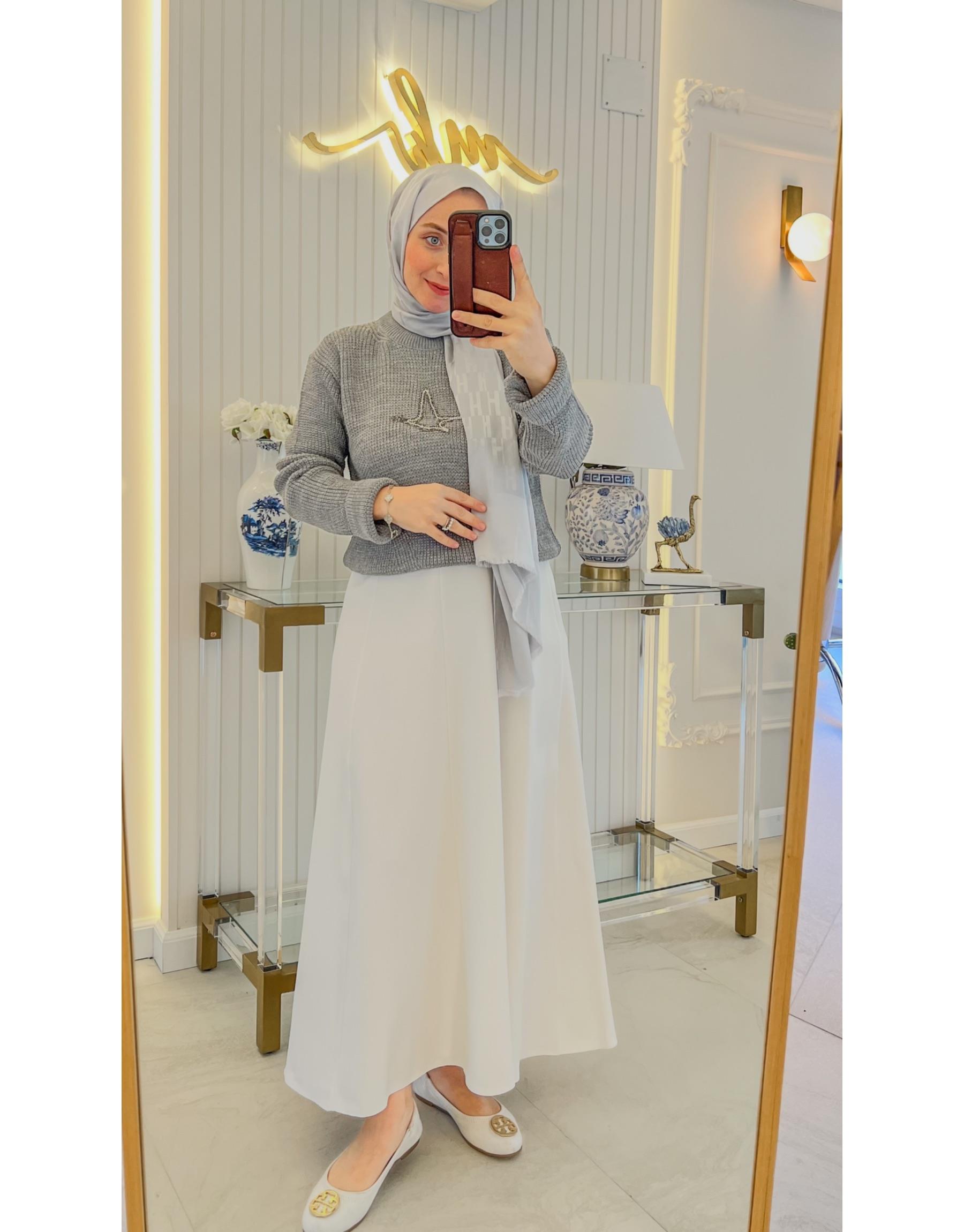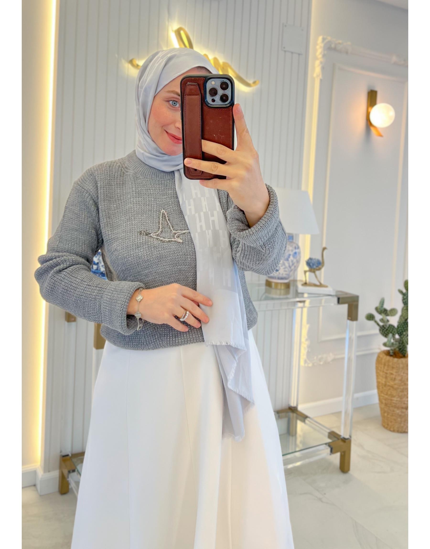 Bayan Gri Etek Üstü Simli Örgü Triko Kazak | Merve Karaca