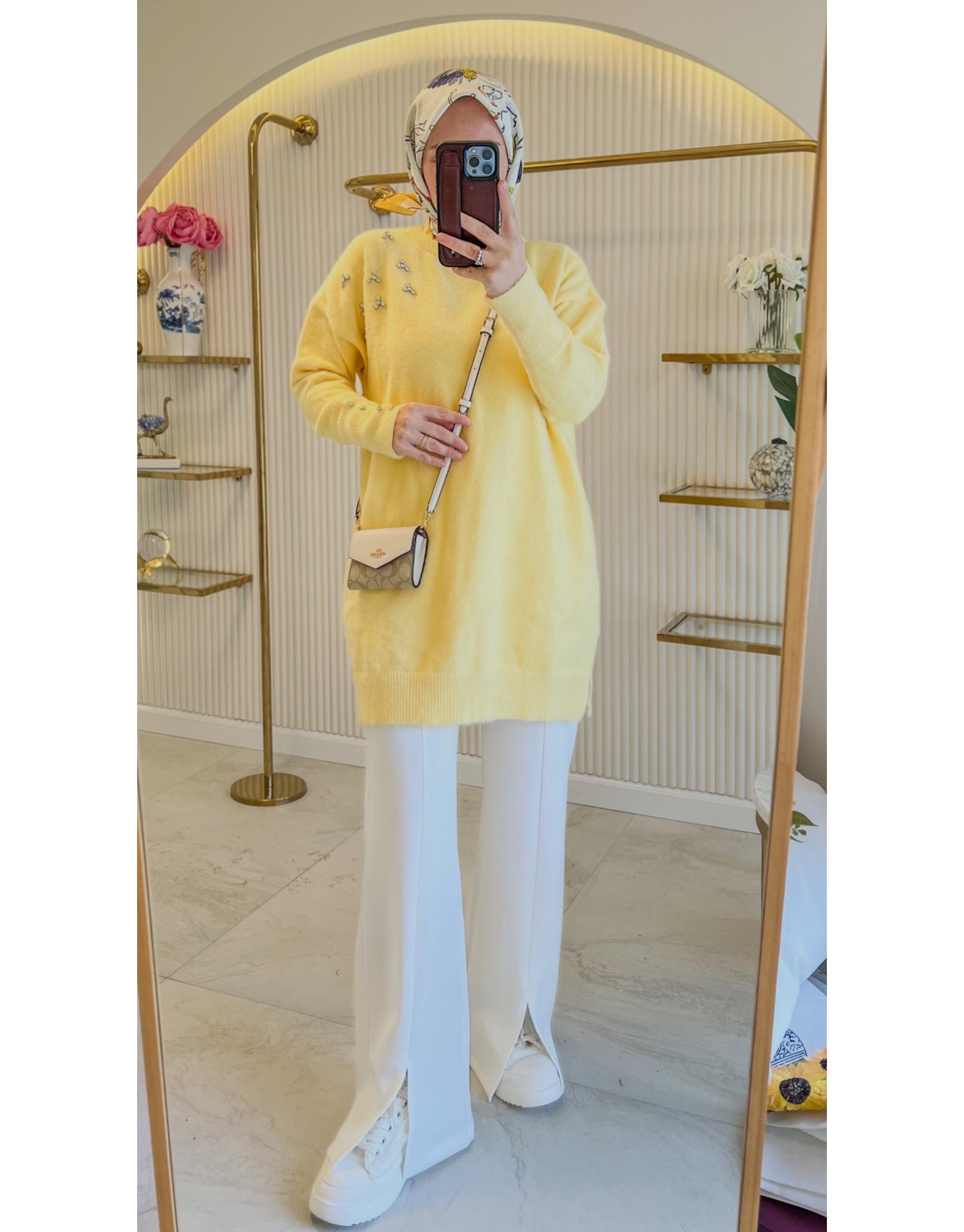 Beyaz Yırtmaç Detaylı Modal Pantolon