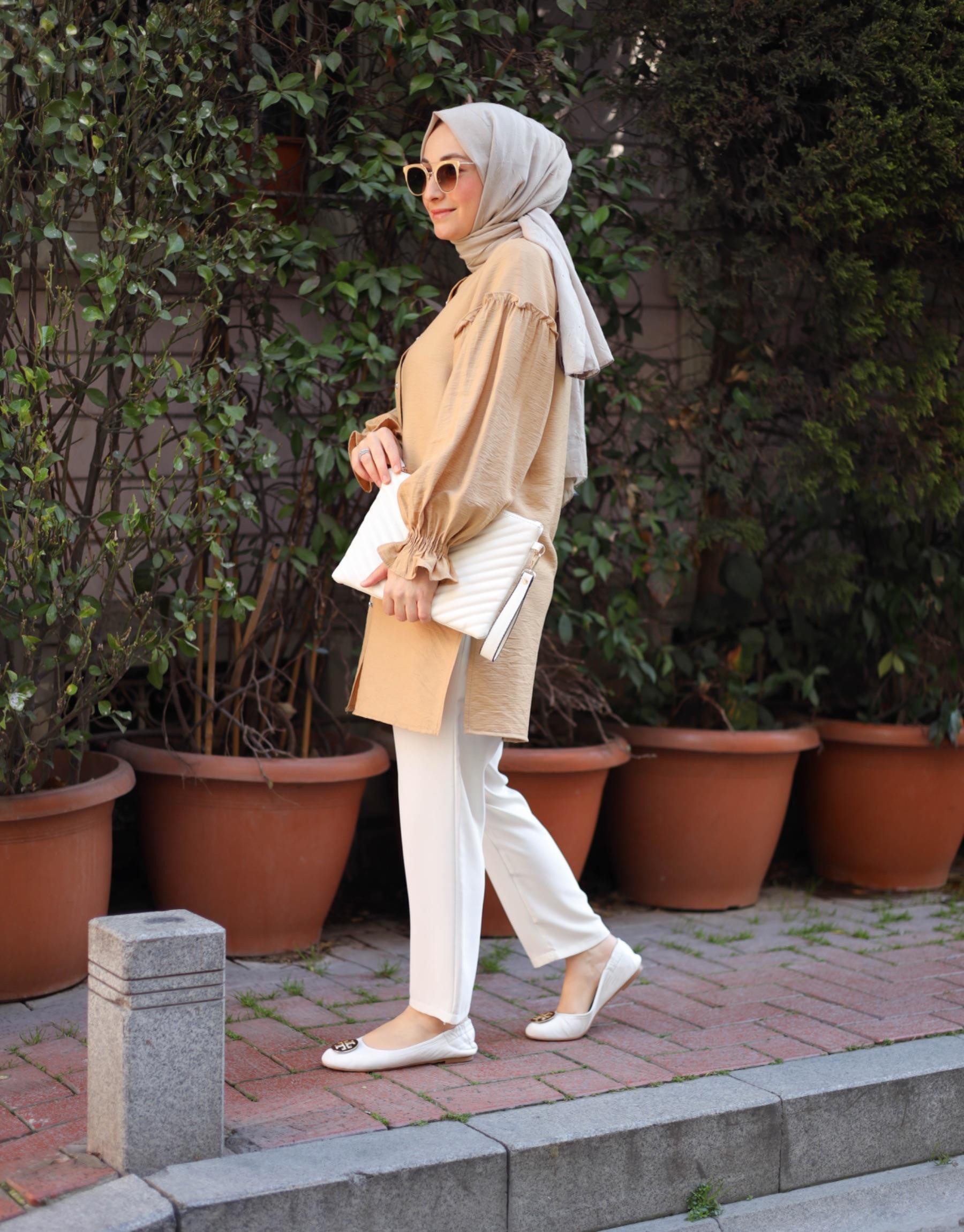 Beyaz Yırtmaç Detaylı Modal Pantolon