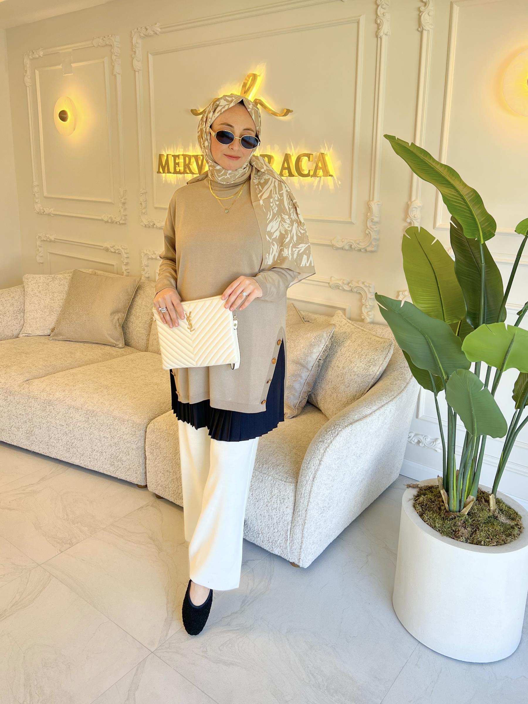 Beyaz Yırtmaç Detaylı Modal Pantolon