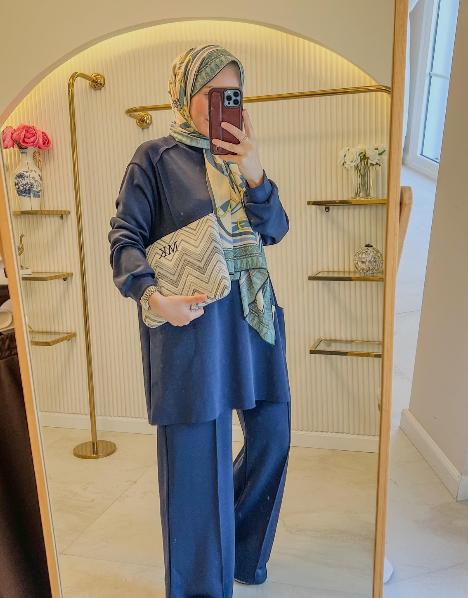 Bayan Lacivert 22629 Çima Pantolonlu Modal Takım | Merve Karaca