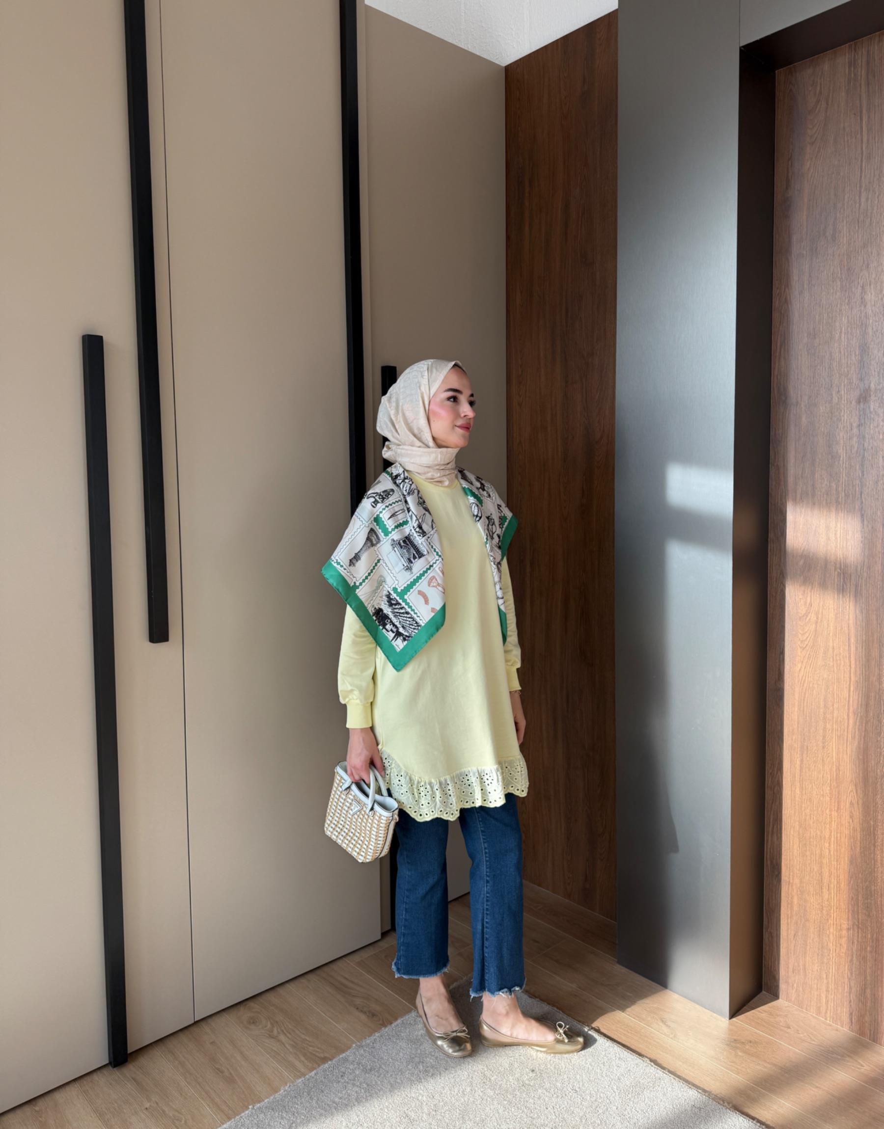 Beyaz 5033 Işıltılı Yumoş Tunik