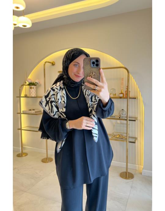 Bayan Siyah Karyoka Yaka Detaylı Kısa Kollu Takım | Merve Karaca